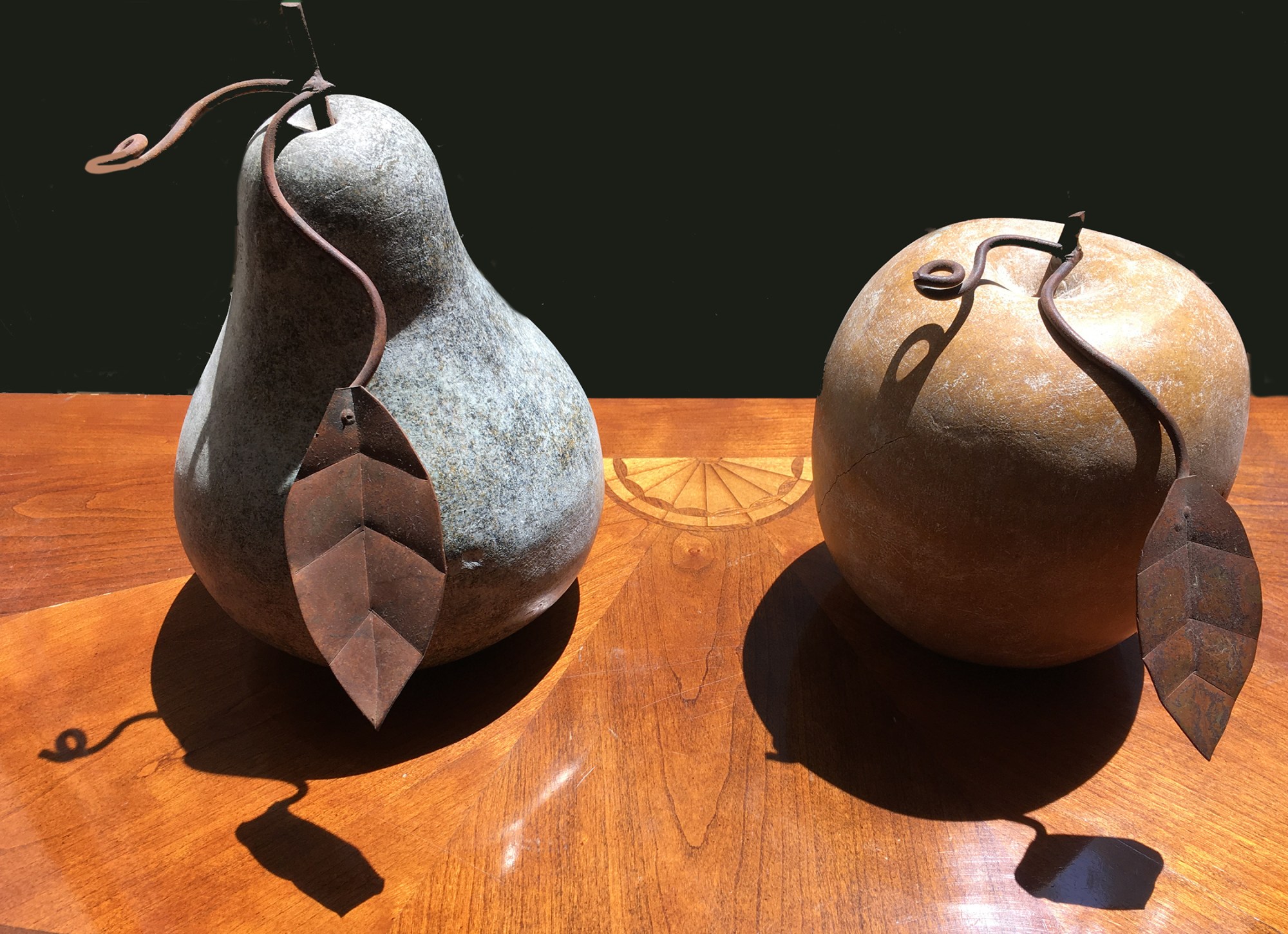 Pear 10 x 8 inches; Apple 7 x 6 inches