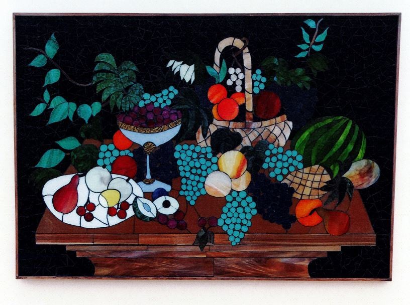 Reportedly a copy of a work in the Abby Aldrich Rockefeller Folk Art Museum, Colonial Williamsburg. Donated by the IRC Mosaic Guild.