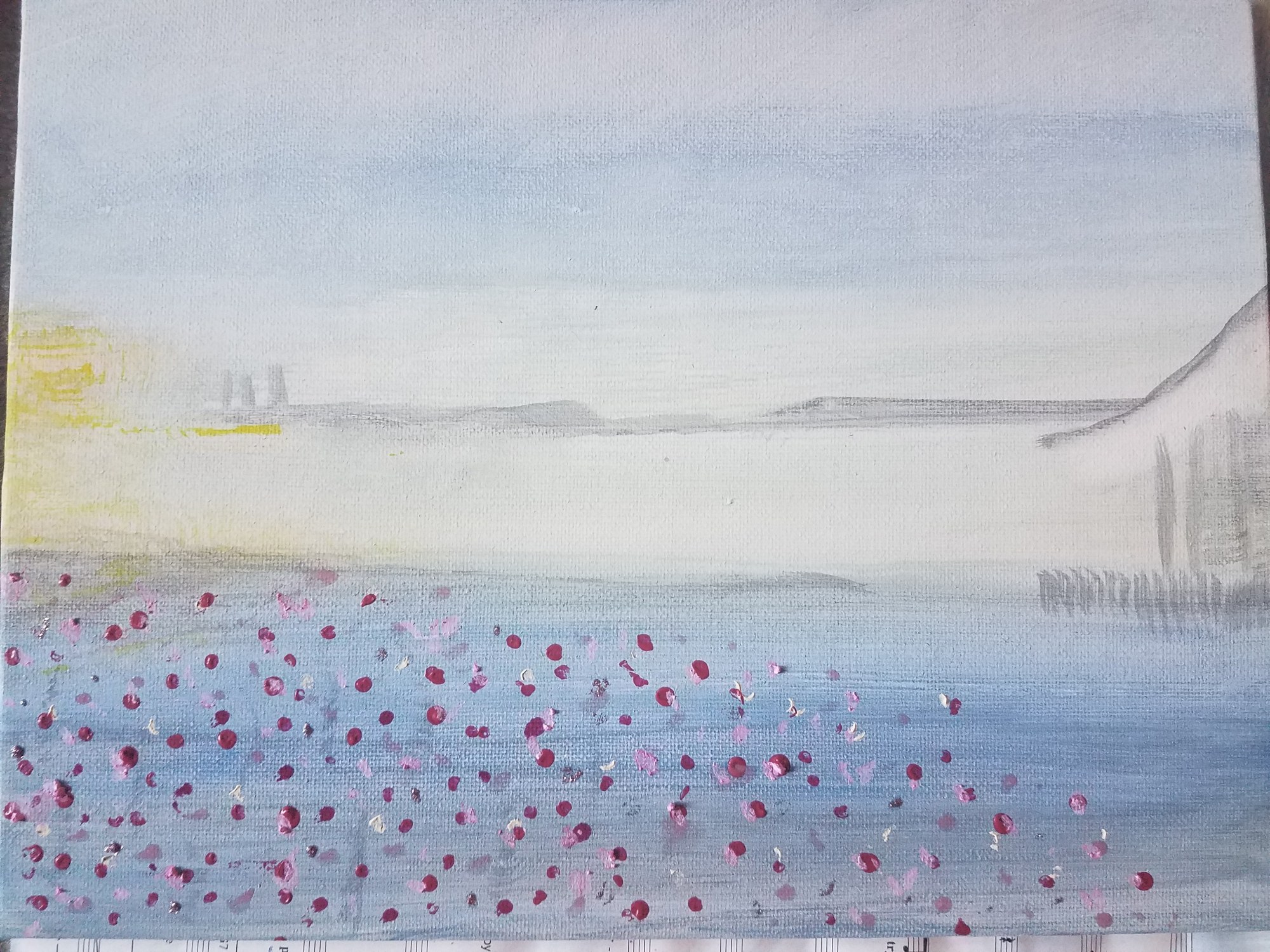 One of three paintings utilizing pictures of a faraway Country.