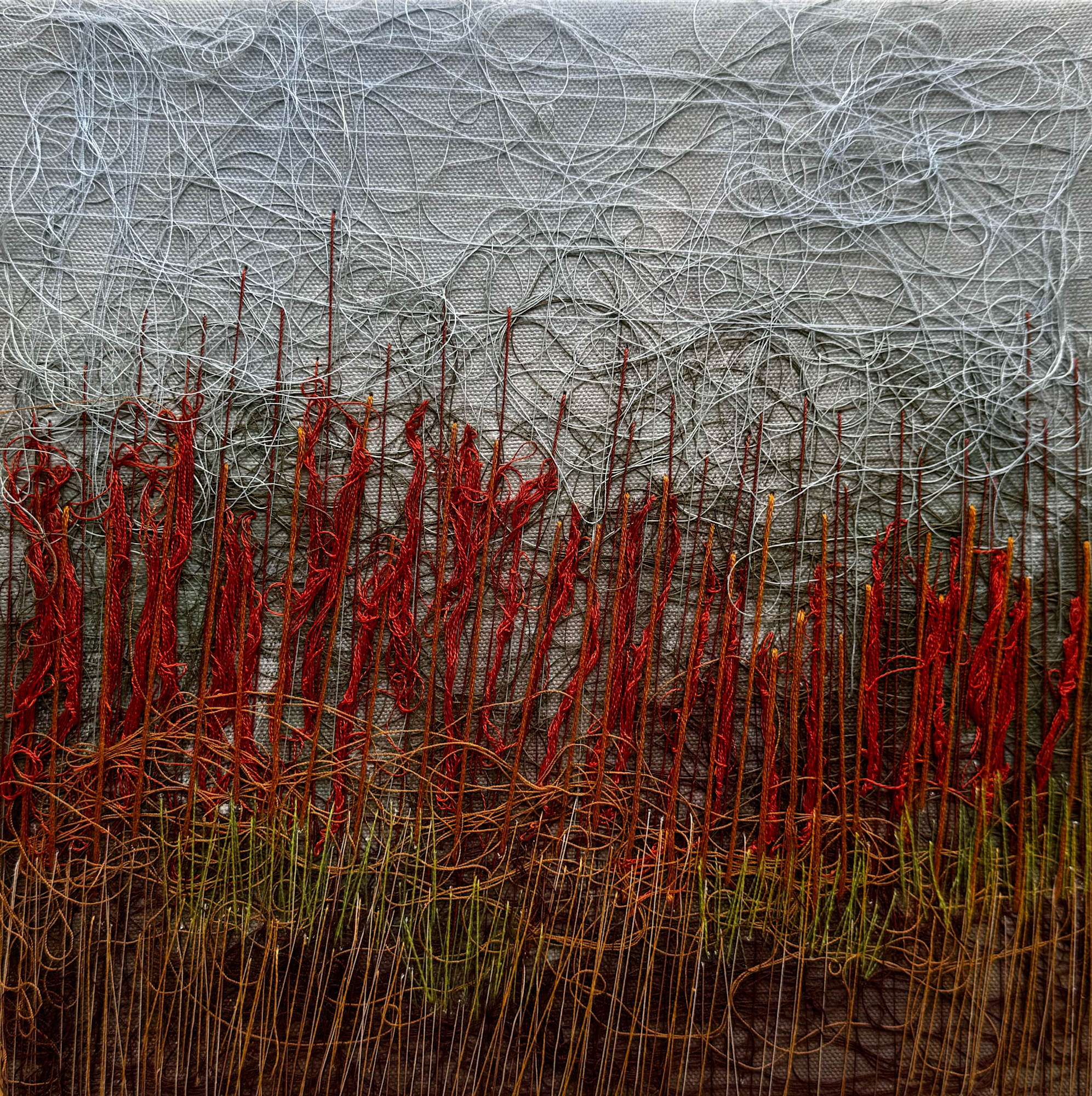Acrylic On Canvas with embroidery and loose thread