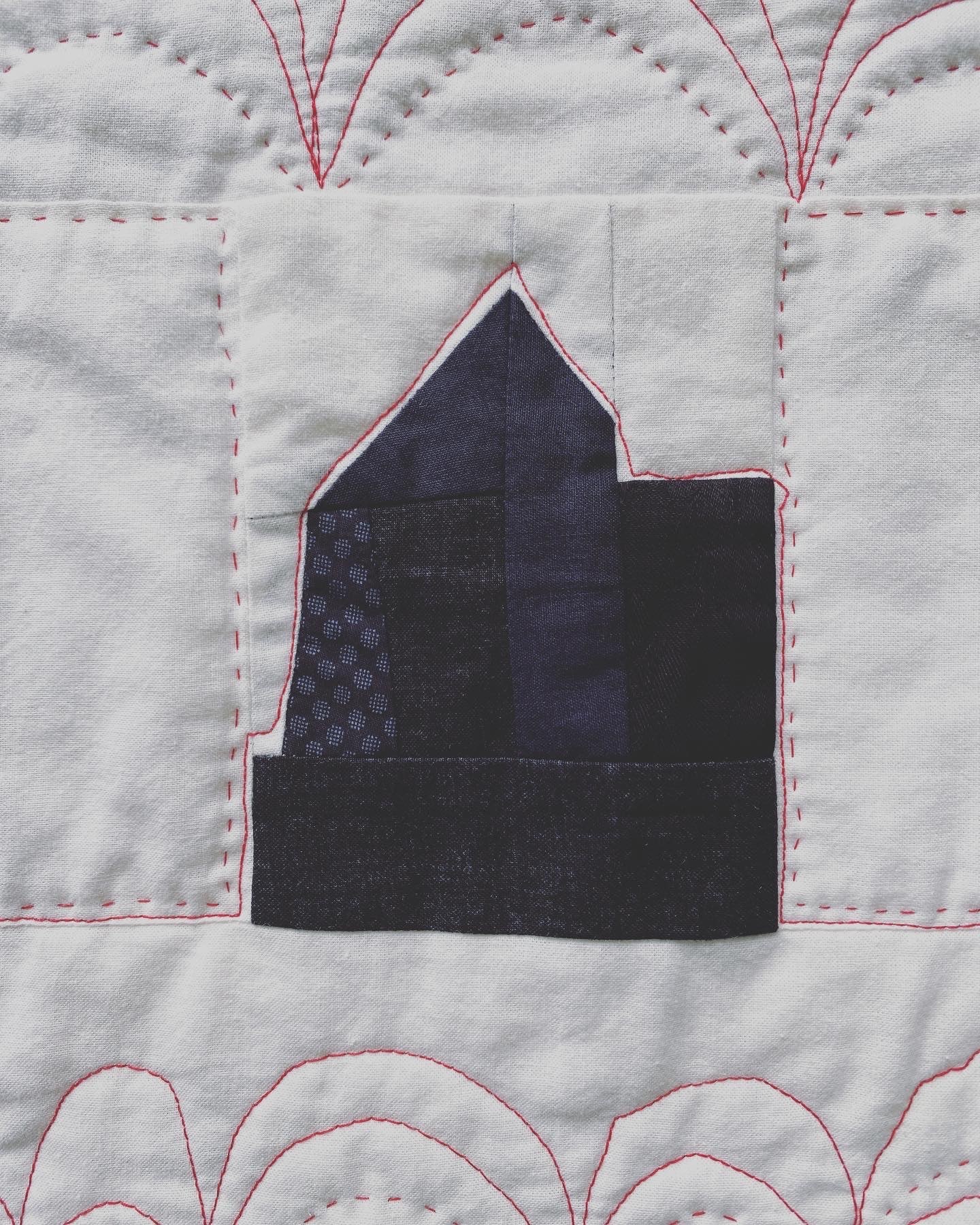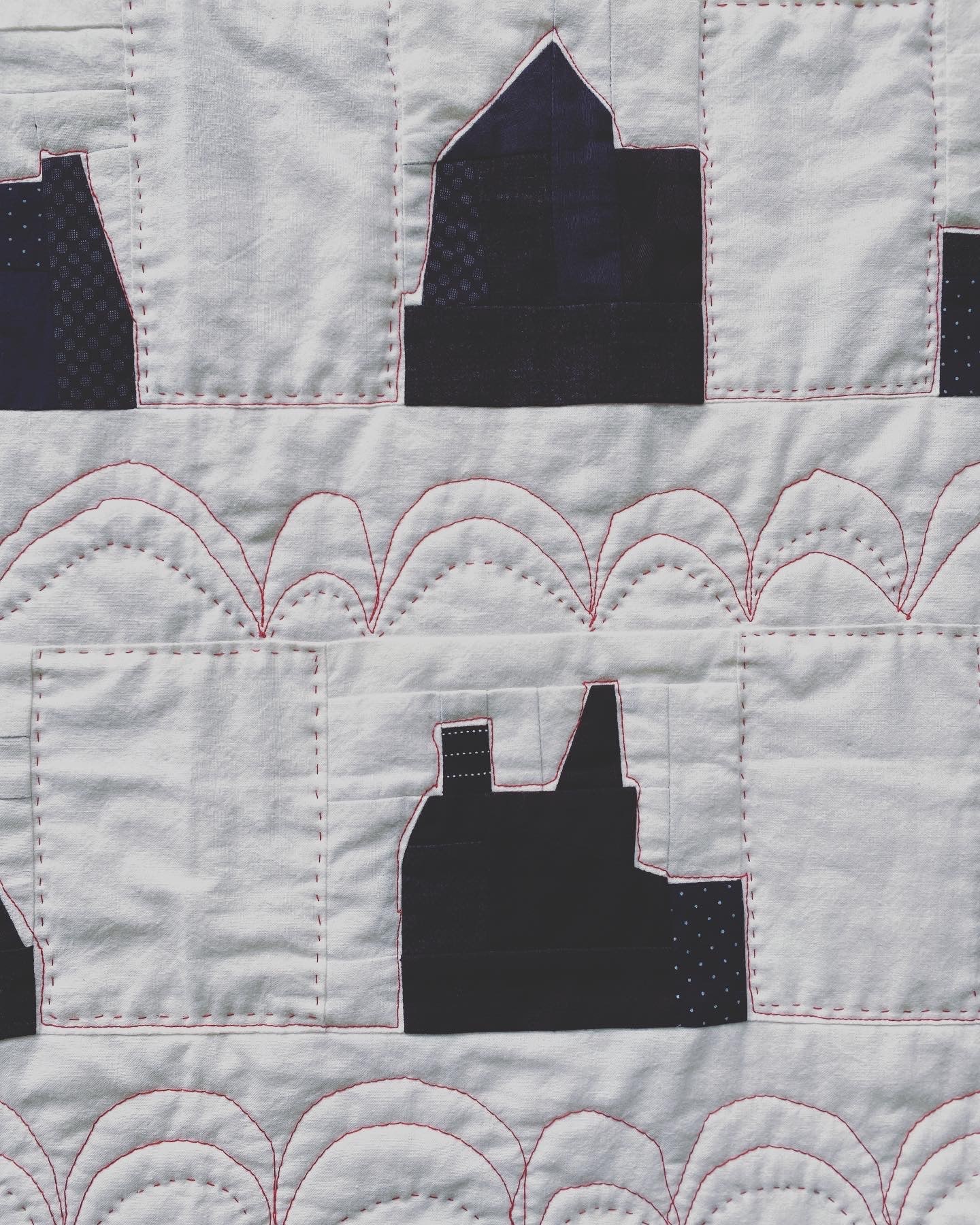 Improv quilting using recyled mens shirts and various cotton fabrics