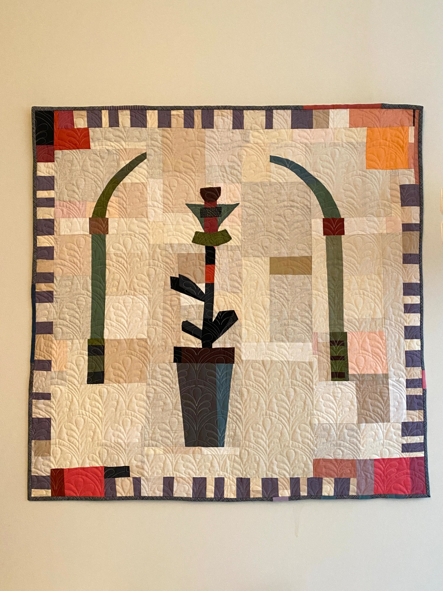 Improv quilting using recyled mens shirts and various cotton fabrics