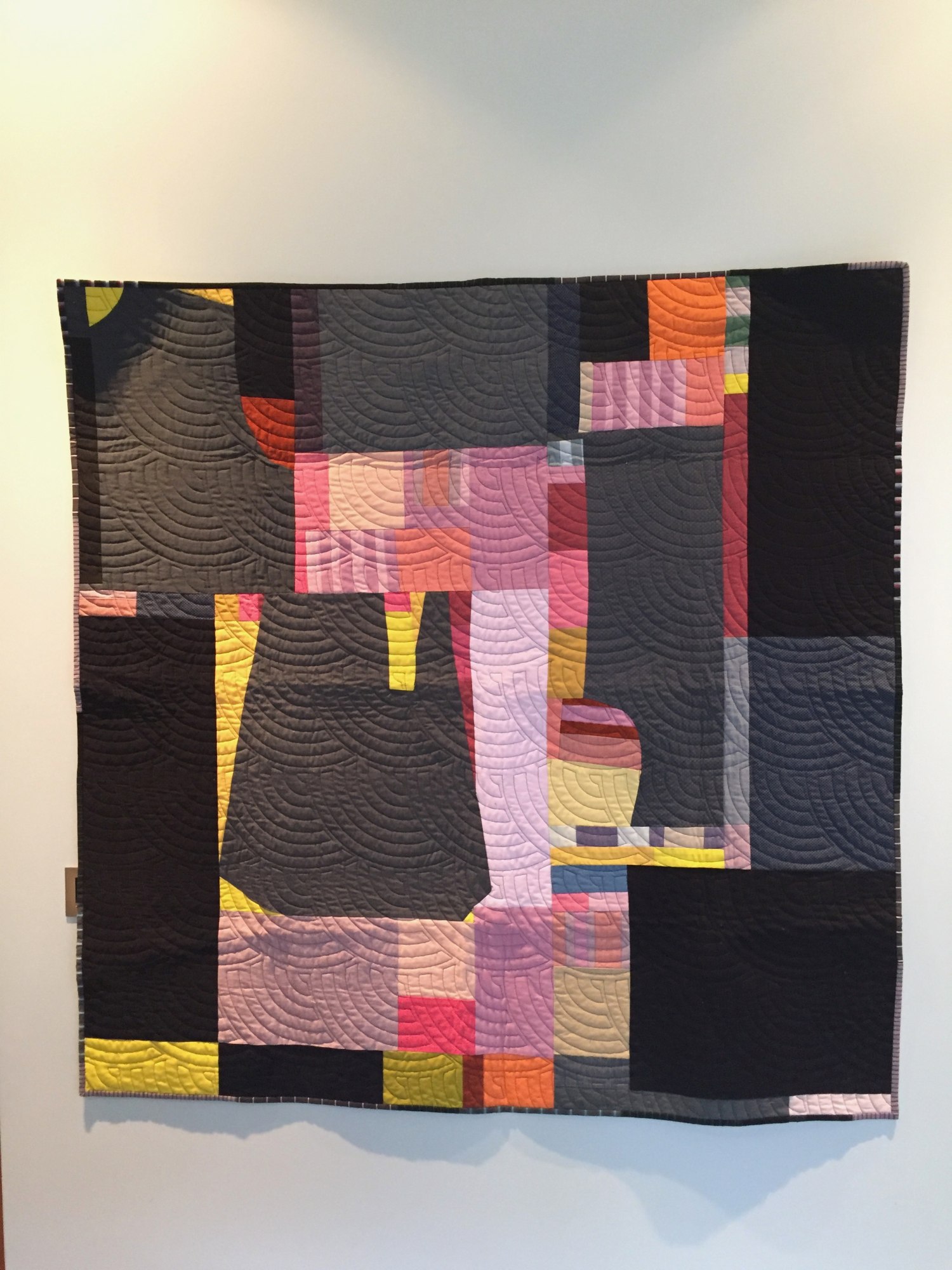 Improv quilting using recyled mens shirts and various cotton fabrics