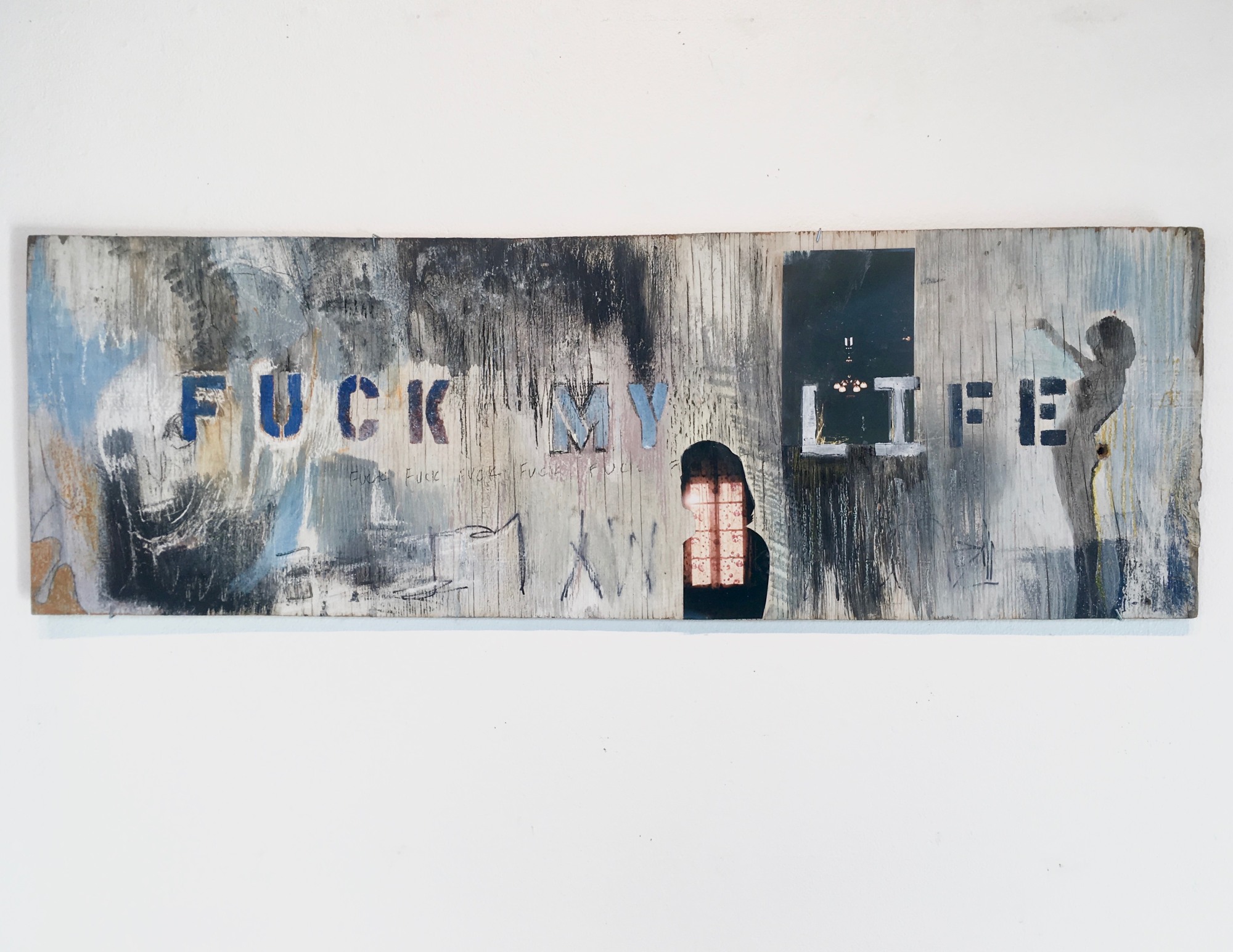 Acrylic, Soft Pastel, Photograph on Found Wood