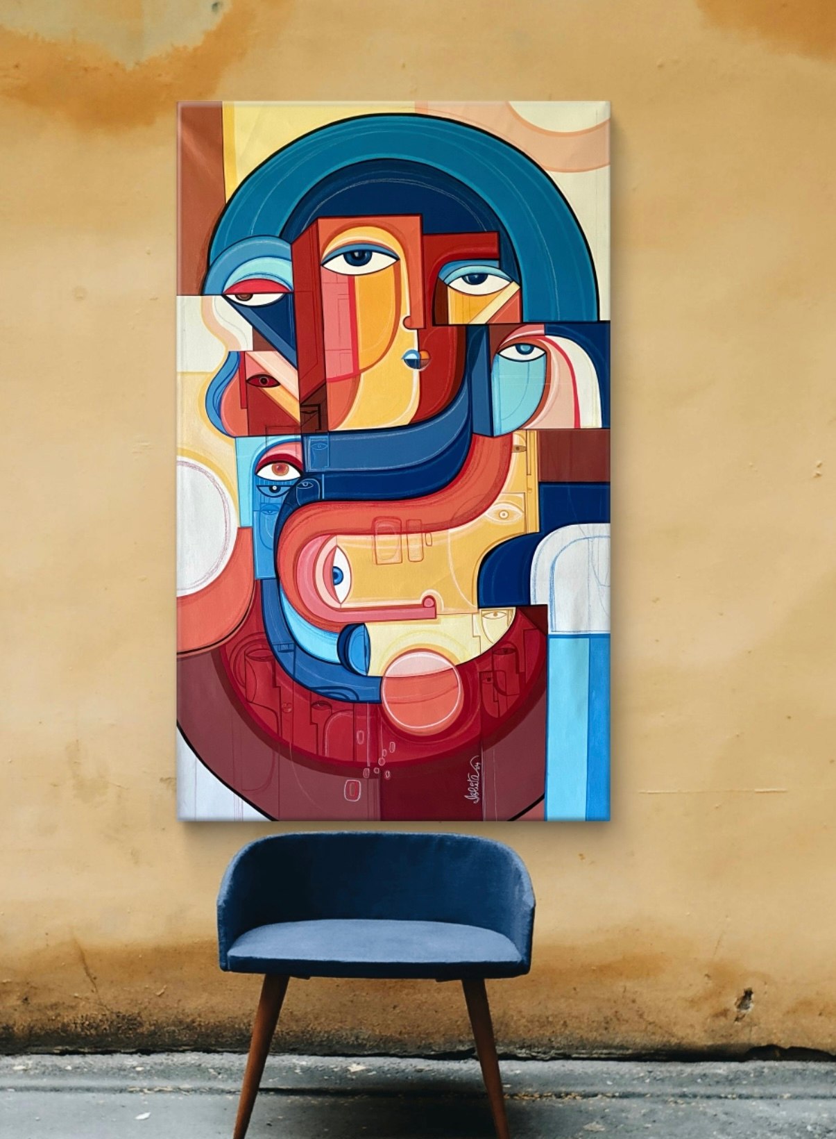 - Subject Matter: Cubist Faces, abstract faces, portait, people, Cubism, relationships