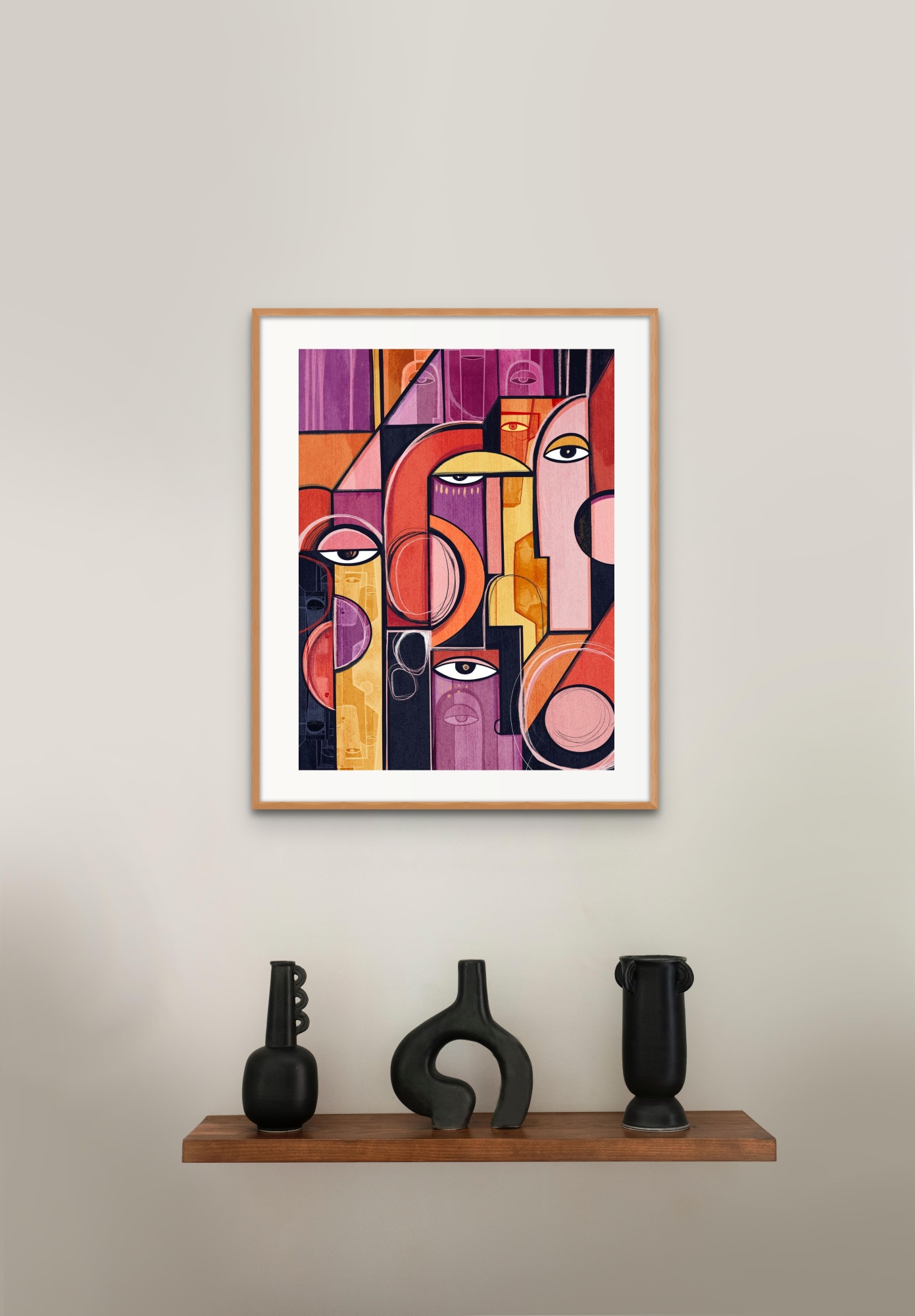 - Subject Matter: Cubist Faces, abstract faces, portait, people, Cubism, relationships, black and white, vintage, shapes, large art print