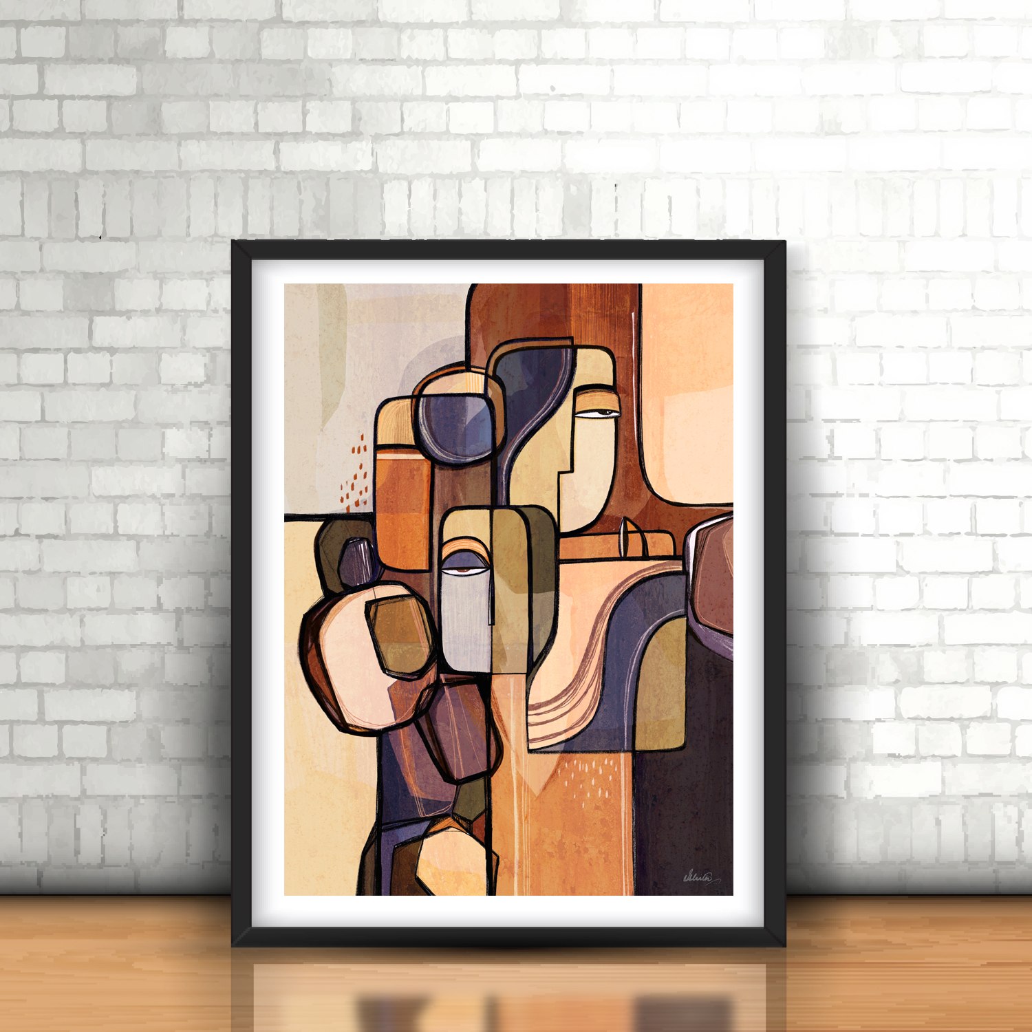 Stemming from the intersection of earth, sky and the sun, this bold, contemporary art print is eloquent in its expression and organic in its interpretation. This one of a kind abstract art is symbolic of human inter-relationships and our similarities with each other.