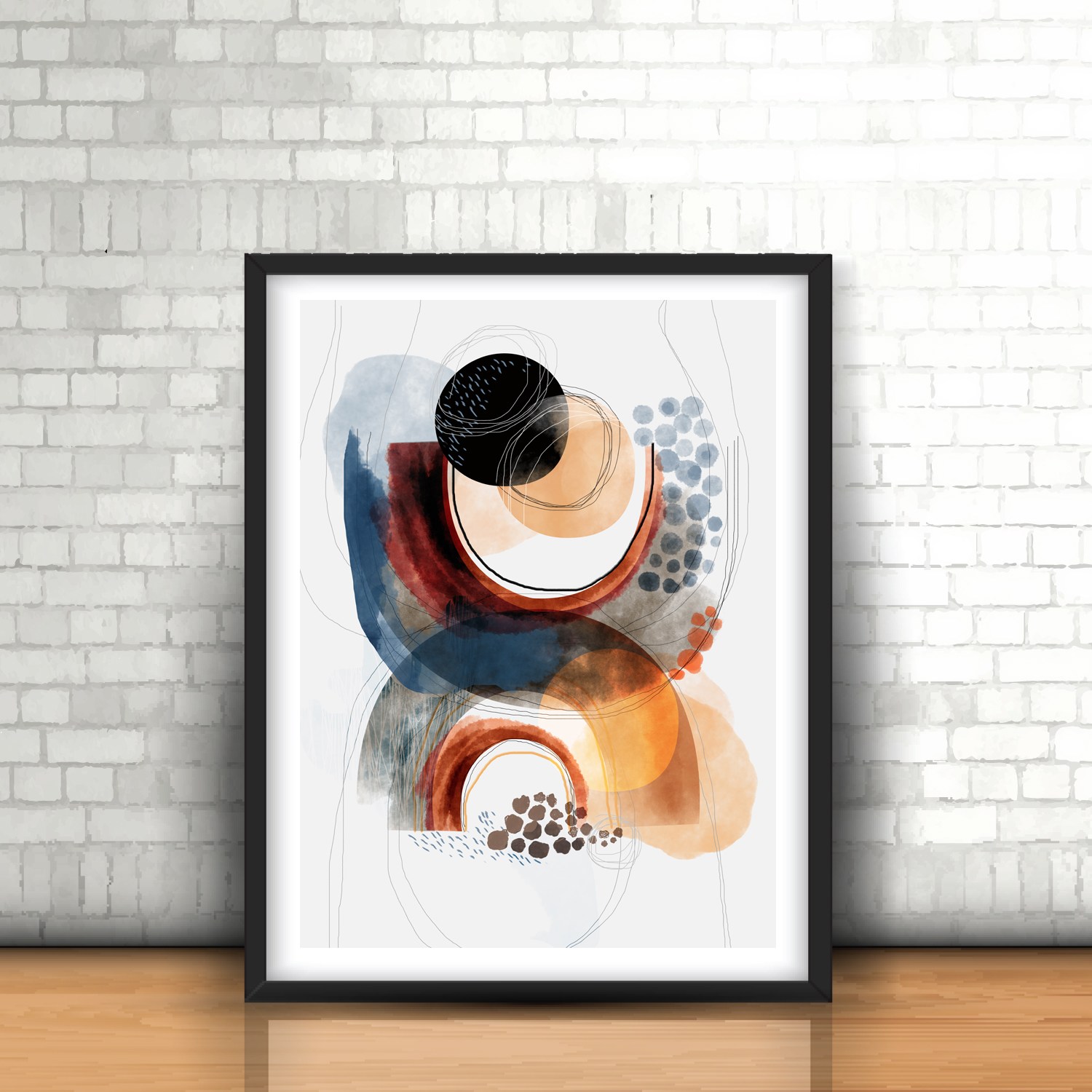 - Subject Matter: Mountains, abstract landscape, nature, mid-century modern, vintage, shapes, large art print