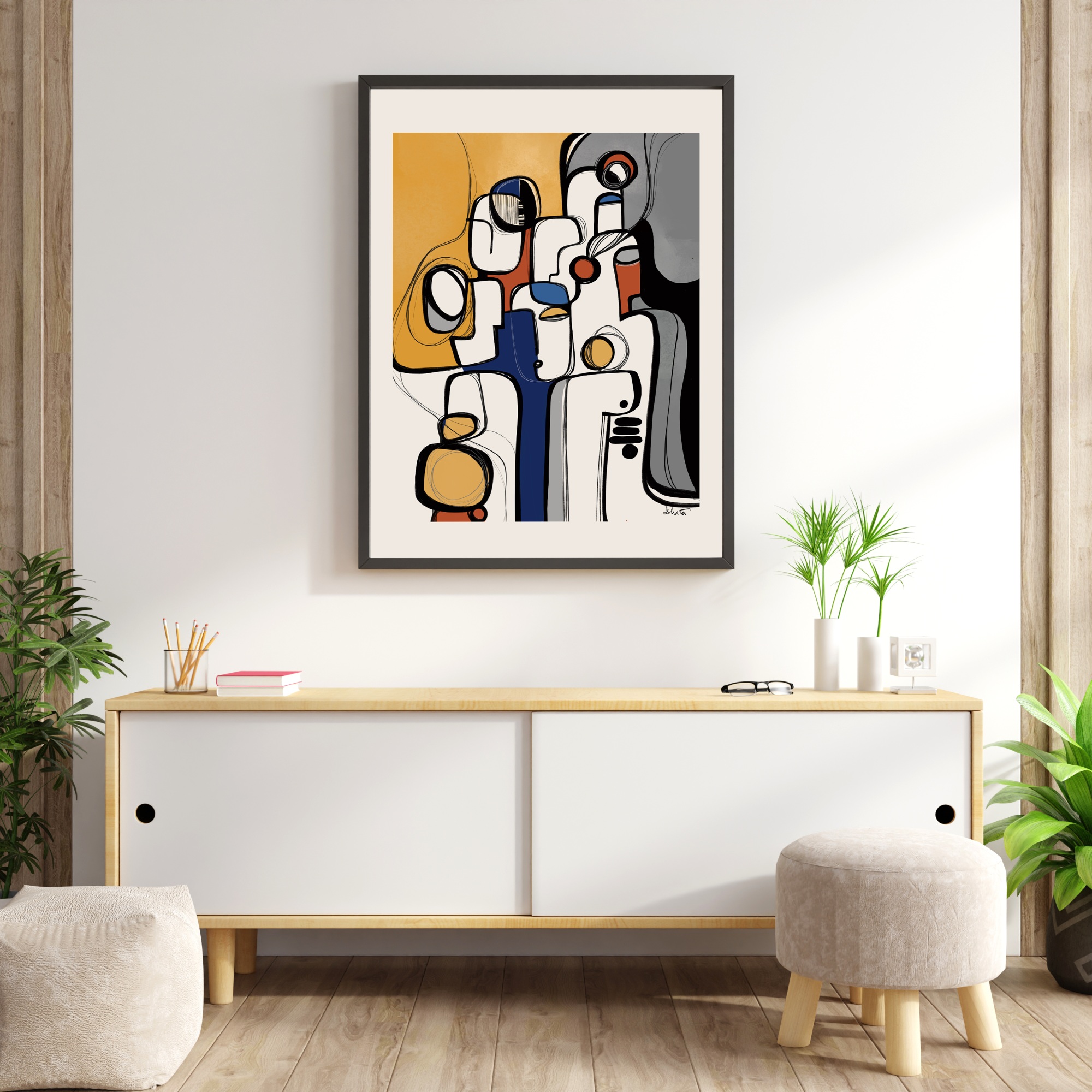 Stemming from the intersection of earth, sky and the sun, this bold, contemporary art print is eloquent in its expression and organic in its interpretation. This one of a kind abstract art is symbolic of human inter-relationships and our similarities with each other.