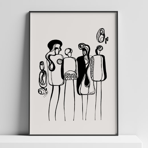 Pod People Amis, Modern, Minimal, Figurative Line Art Drawing, Fine Art Print by Ishita Banerjee, Soul Curry Art