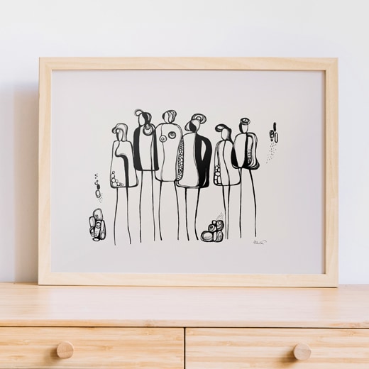 The Pod People (Unframed) series is a series of prints from my original pen and ink illustrations, inspired by people and faces and the organic intersections of human expressions.