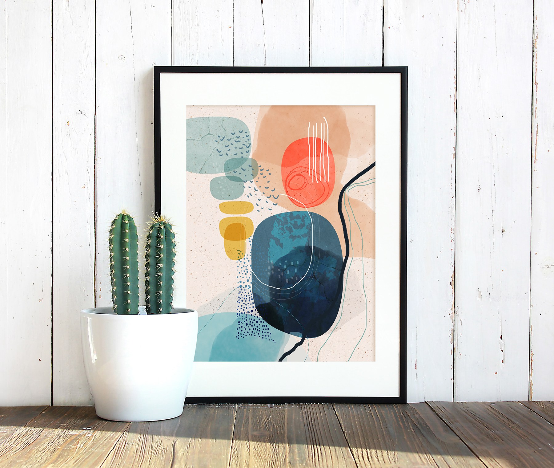 - Subject Matter: Rocks, abstract landscape, nature, rocks, mid-century modern, vintage, shapes, large art print