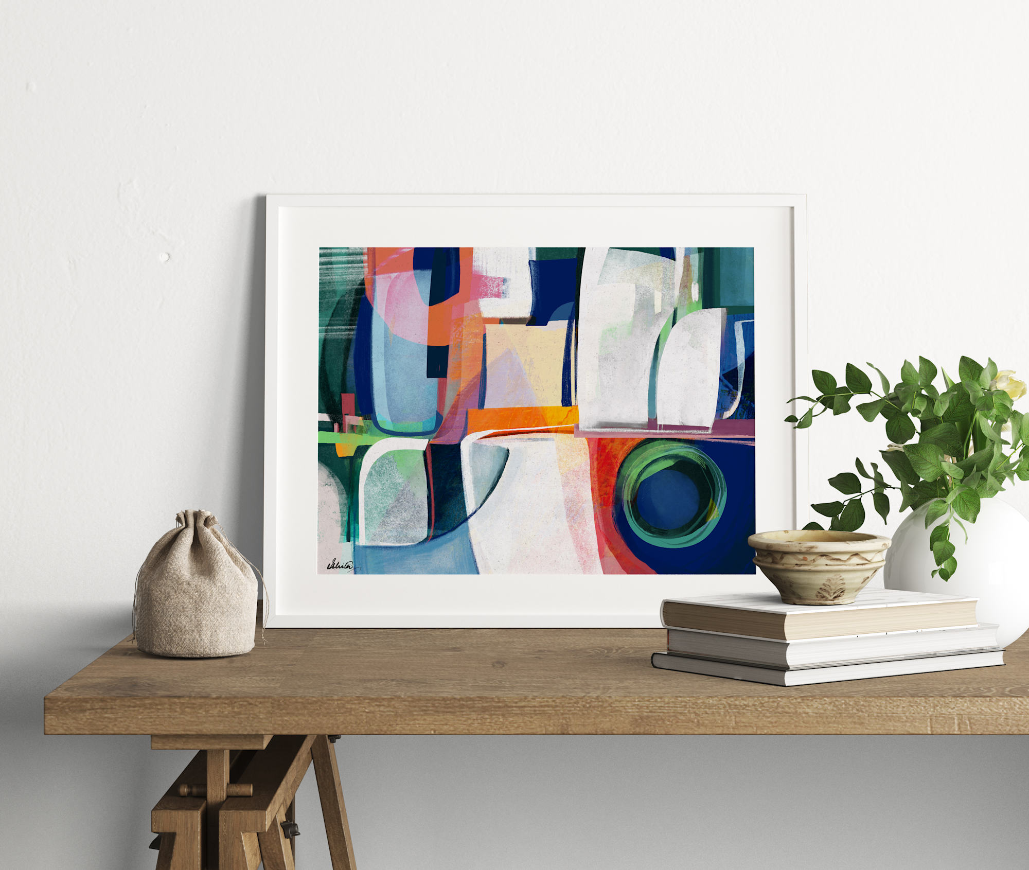 Floral, abstract landscape, nature, mid-century modern, vintage, shapes, large art print