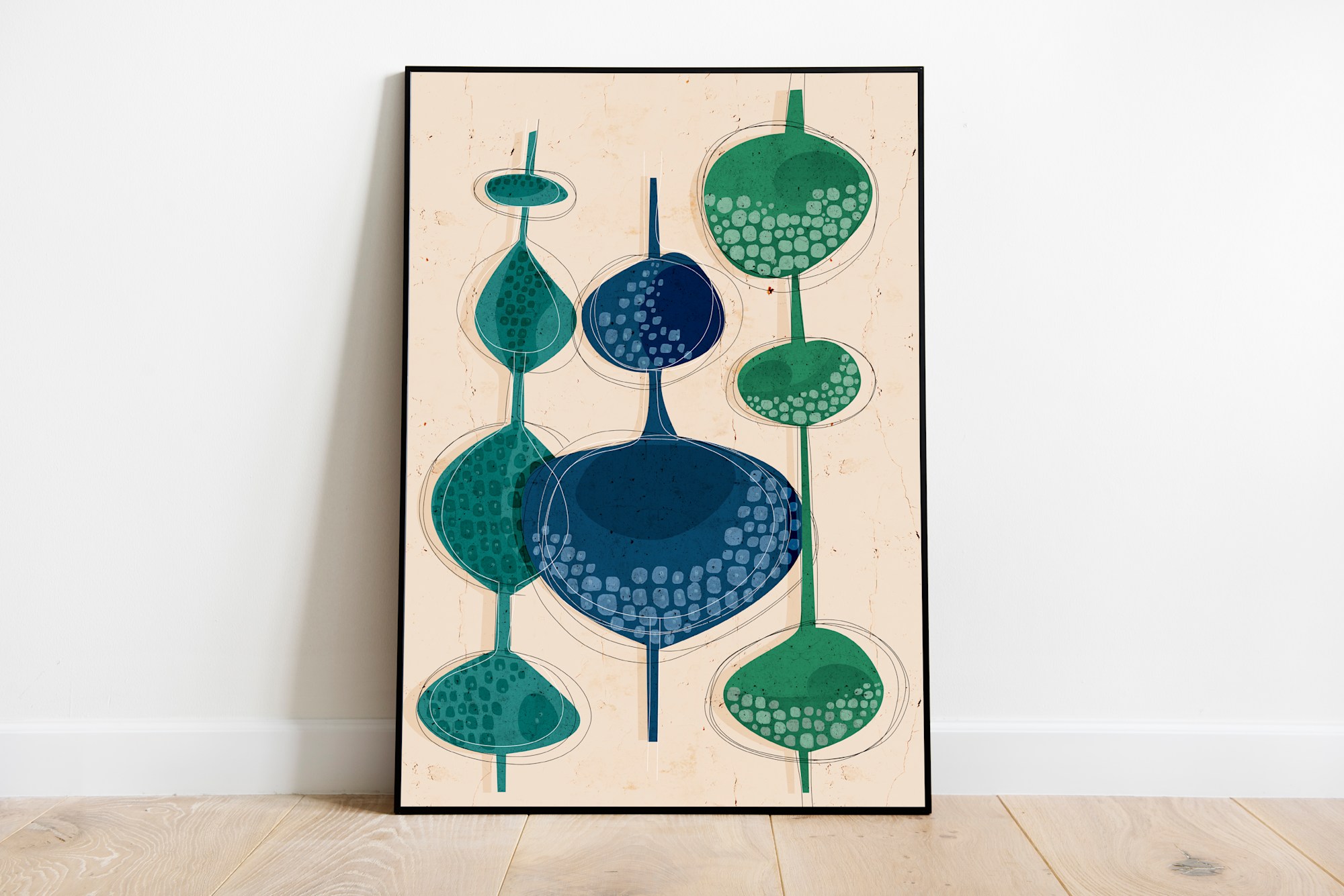 - Subject Matter: Green, forest, abstract landscape, nature, mid-century modern, vintage, shapes, large art print