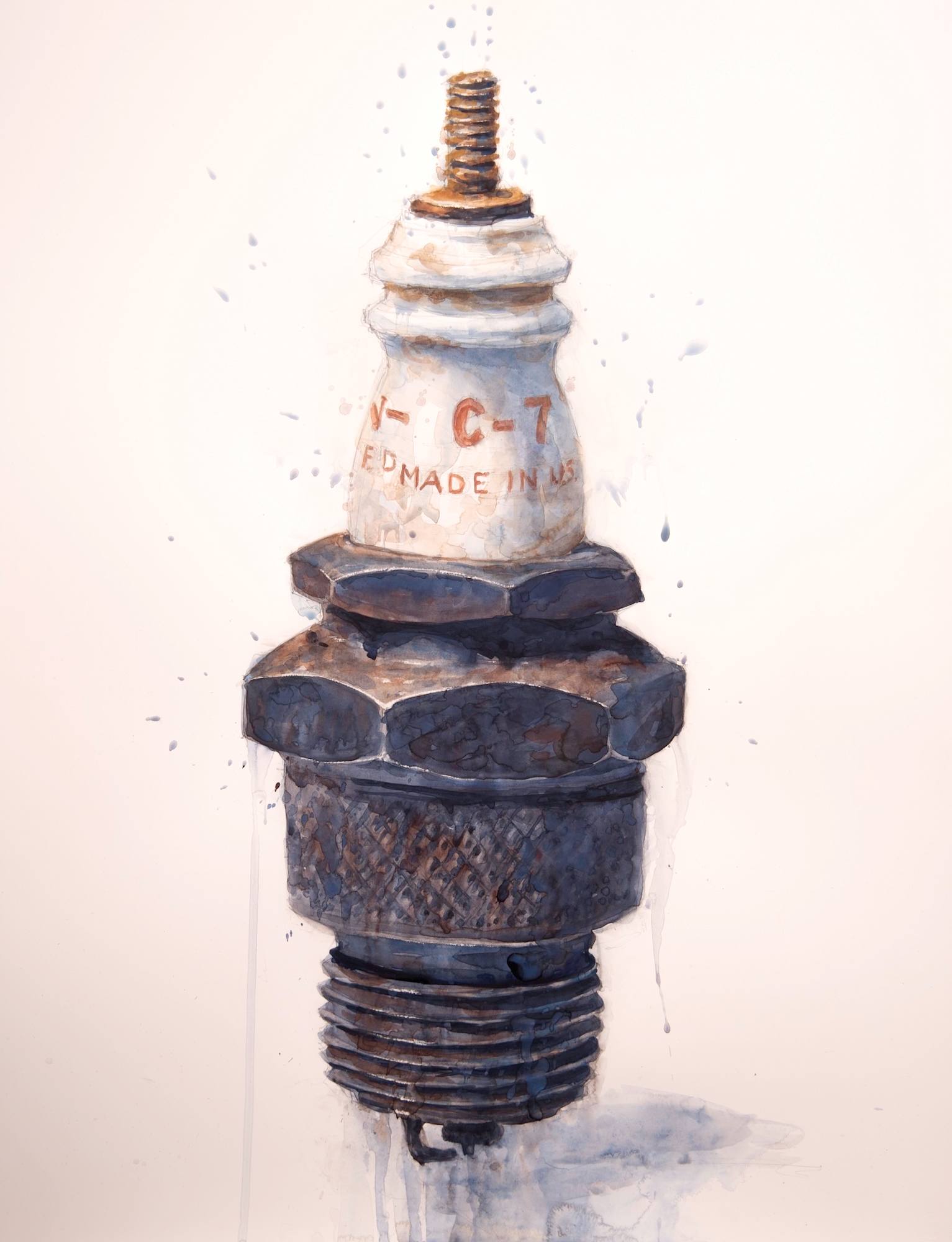 MessageFor me, there is definitely something about older objects, especially those objects which have outlived their usefulness, that I find particularly interesting. With this object, I was thinking about how its usefulness has changed over the years. Quite some time ago it was new and shiny and was capable of delivering the spark some internal combustion engine needed. Those days have now passed, and I found it in a $3 bin at a neighborhood antique store. It quickly caught my attention due to its color and shape. And it’s found new life as a model in an artist’s studio.