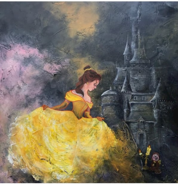 BELLE along with CINDERELLA are the first two paintings I created for the Disney Fine Art Program. Once I completed them, they were shipped to Anaheim California for a in person review. They allowed people to see first-hand my texture and the quality of my work before signing me as a Disney Fine Art Artist.