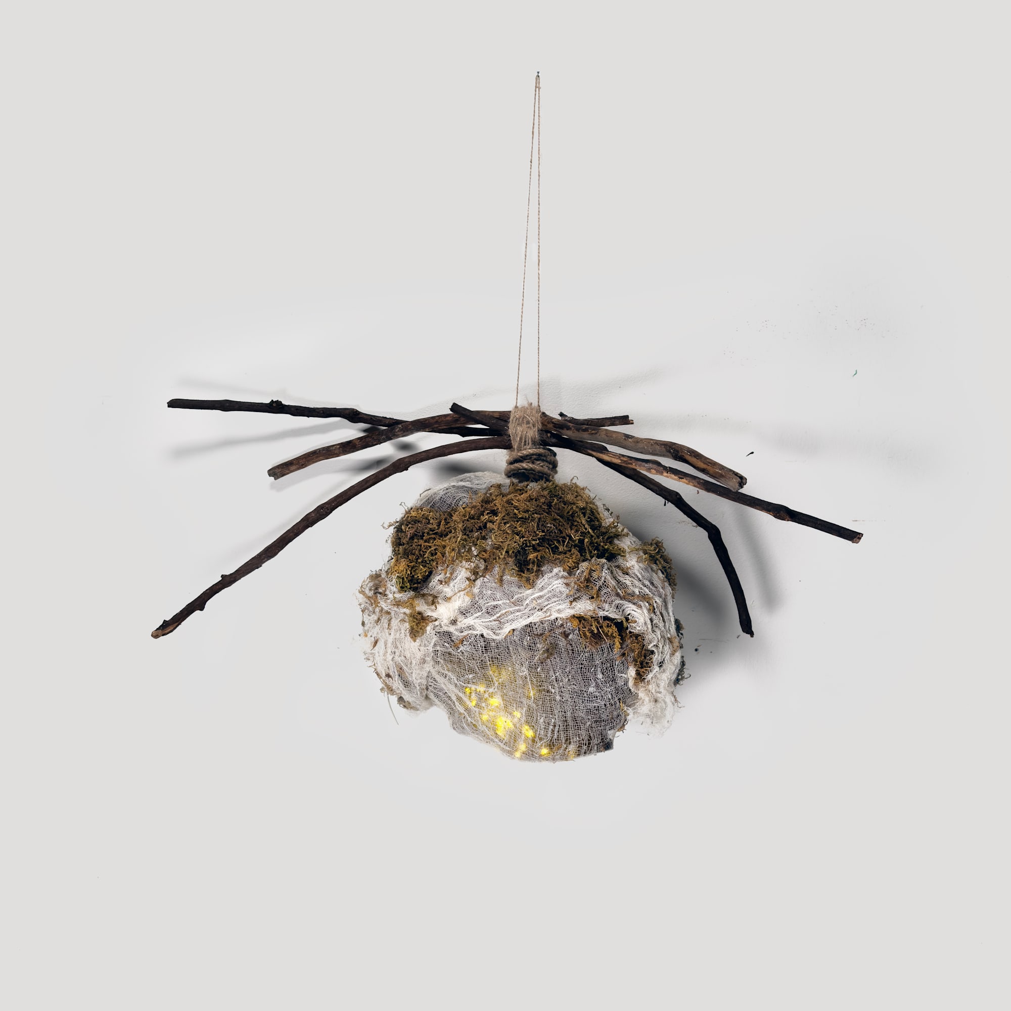 • Cardboard, hardener, Maiden grass fronds, gauze, moss, cotton fiber, hemp, led lights