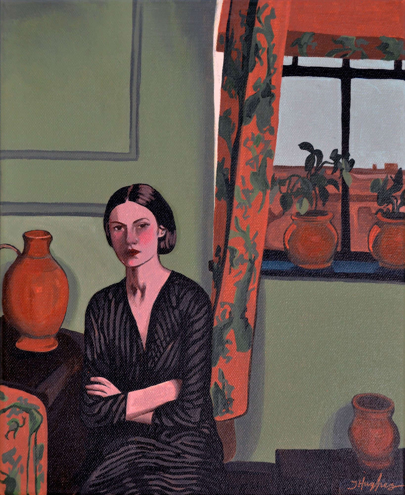 Painted with rich acrylics, this piece brings warmth and depth to the scene, with soft light playing across her features and just a hint of the city outside filtering through. It is a portrait of quiet strength and unspoken thoughts, the kind of artwork that invites you to imagine the rest of the story every time you see it.