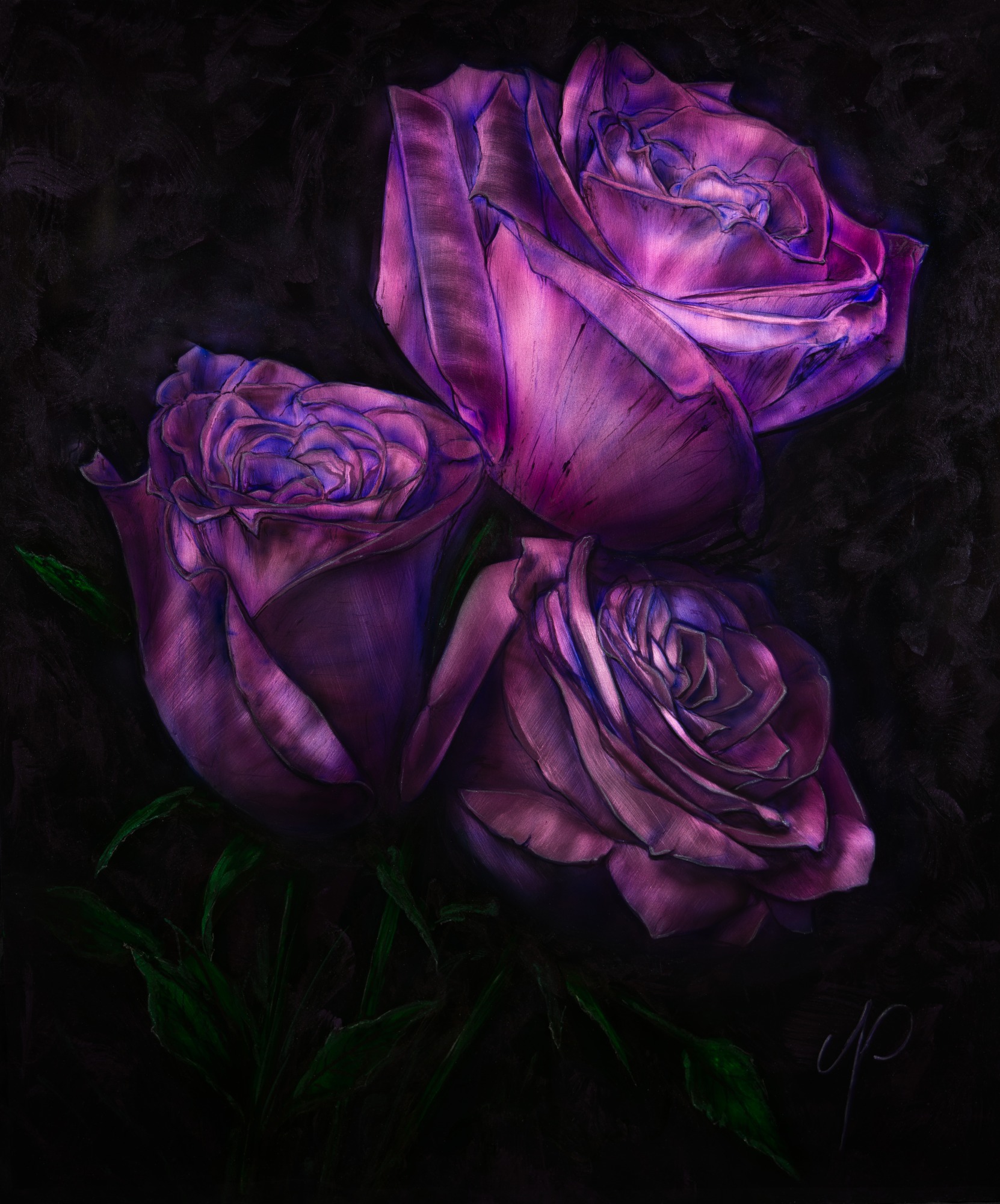 Roses have a deep meaning for me and wonderful childhood memories of my grandmother's beautiful rose bushes . These paintings reflect and change in different lighting .