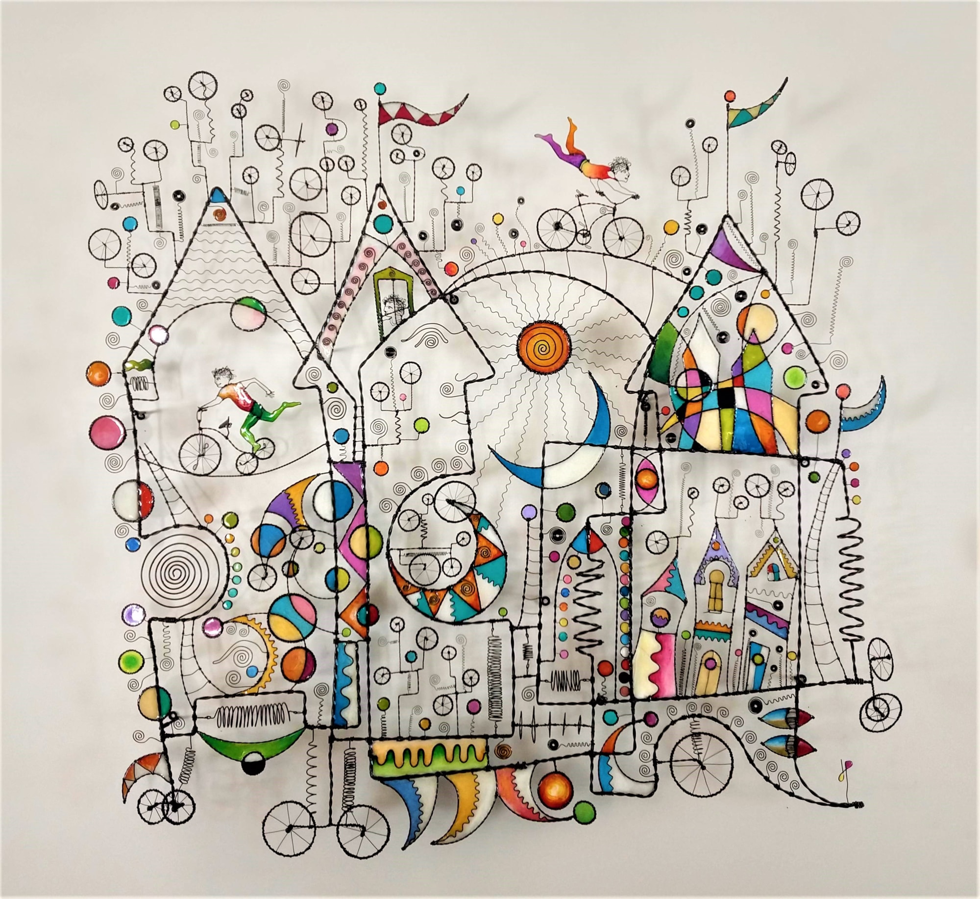I build machine-like objects, twisting pieces of wire to create structures, then adding colour. Some have interactive moving elements. All are exquisite.