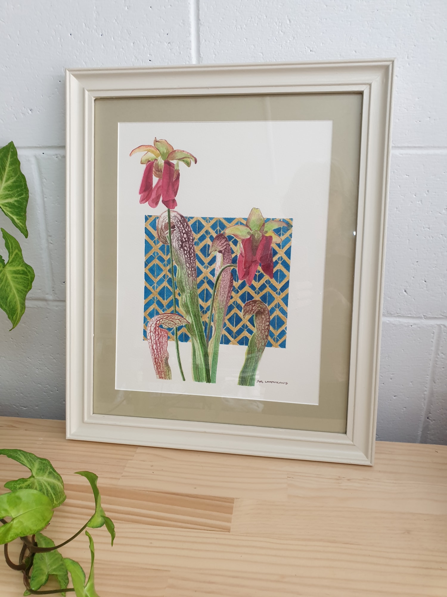 Part of the 'Pattern Series', this one features an unusual plant and a gold geometric design as background.