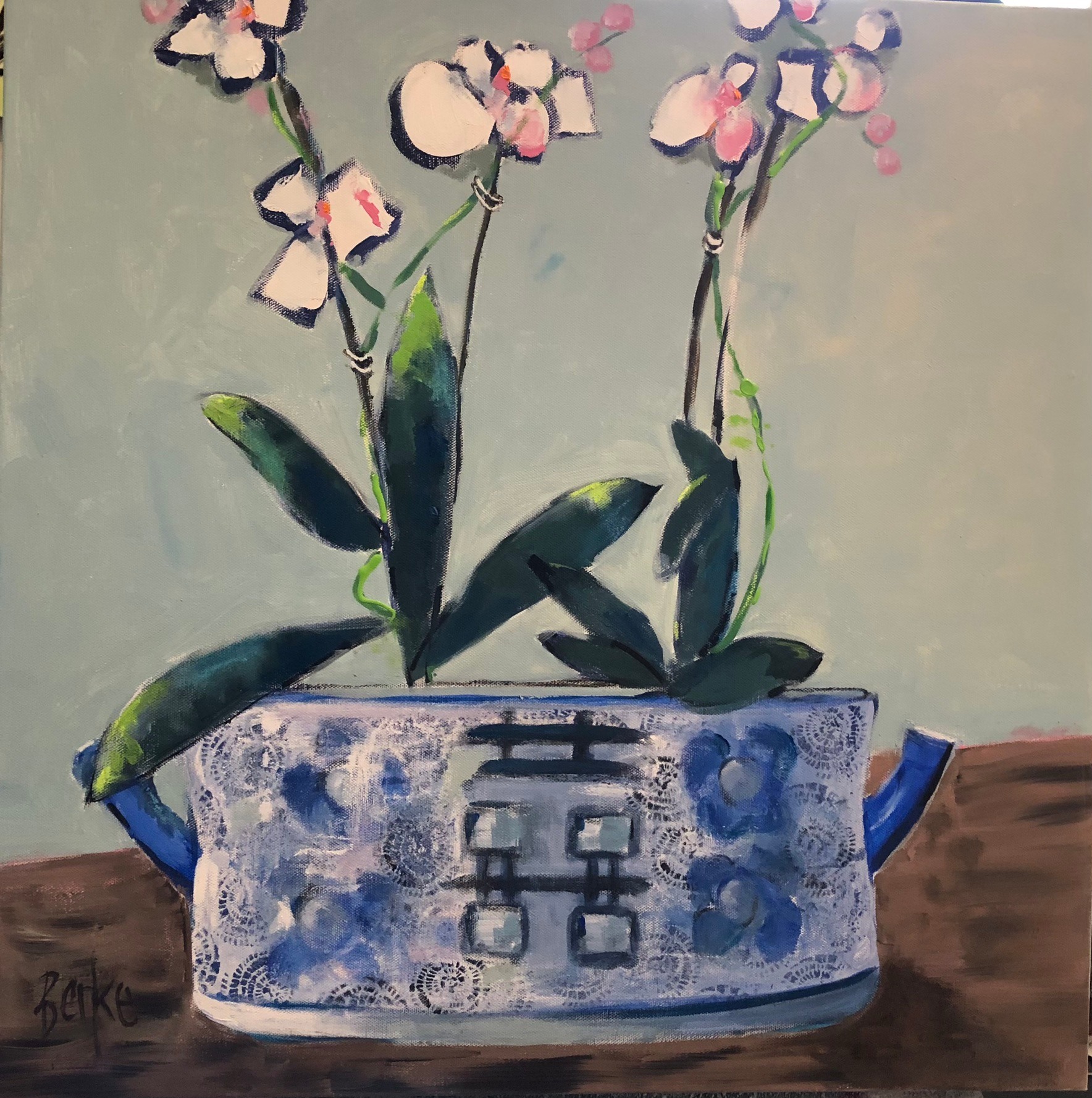 Asian vessel with orchids