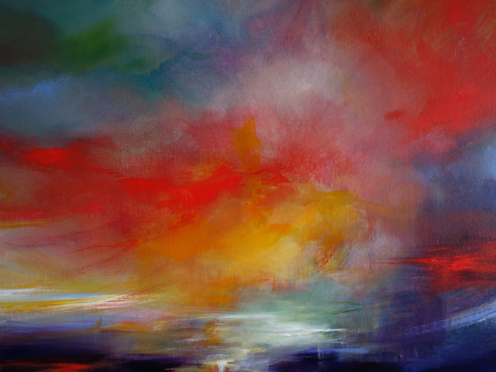 MessageAn atmospheric painting on canvas board, inspired by the fading light of a late summer evening. It's painted using professional artist quality acrylics, including cadmium red, permanent rose, golden yellow, violet and blue-violet and is varnished.