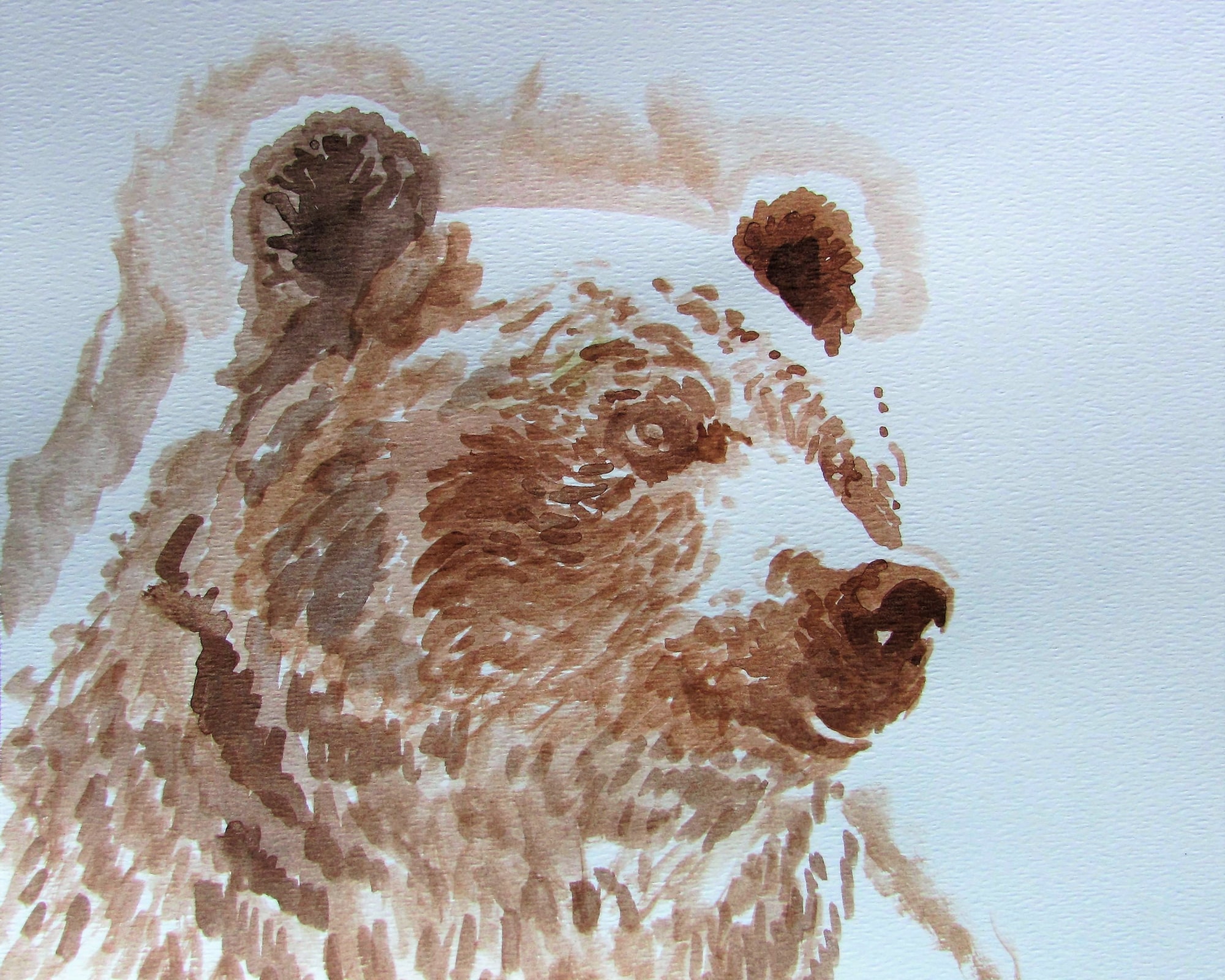 Acrylic painting on 140 lb cold-pressed, acid-free watercolor paper of a grizzly bear head.