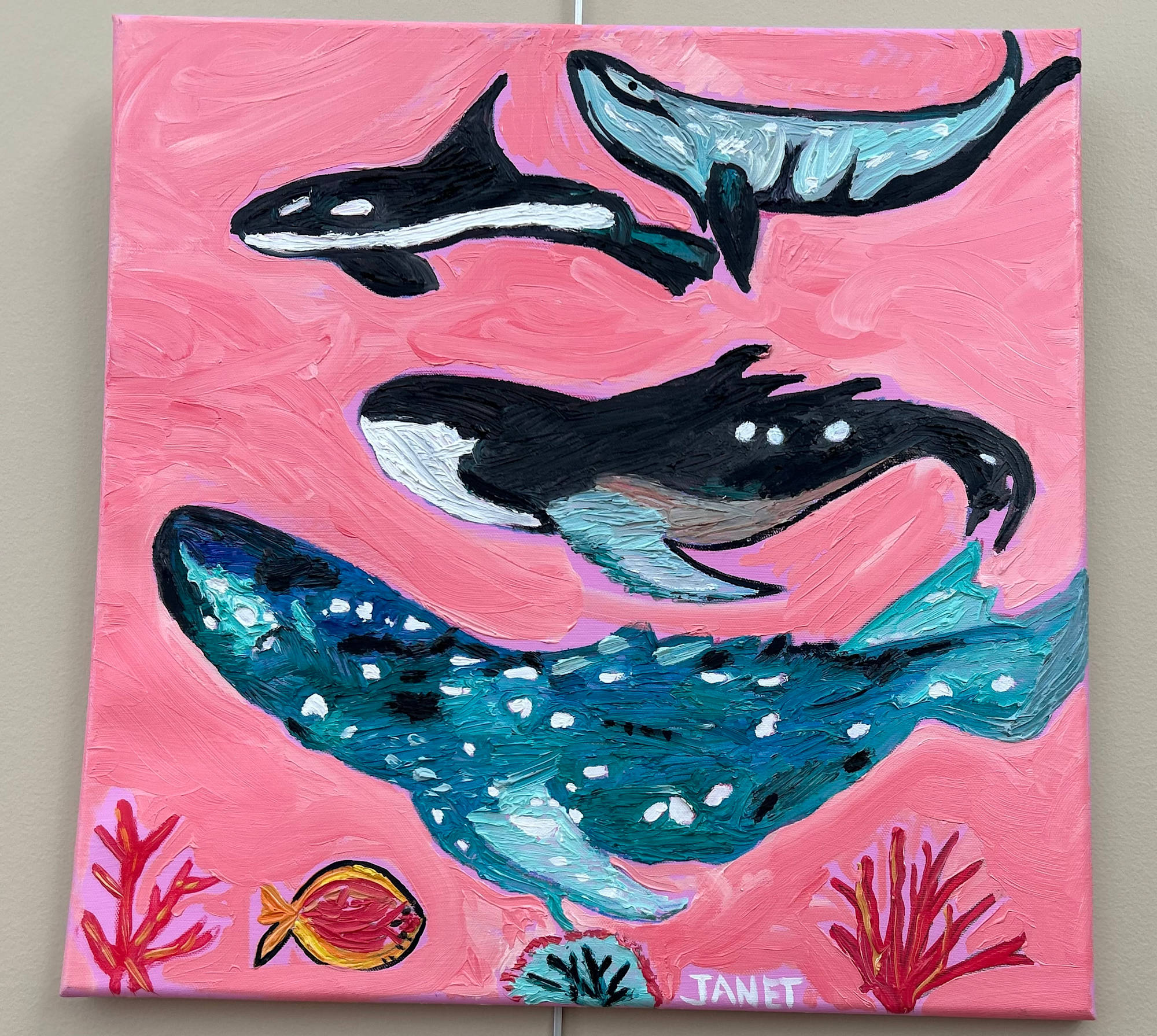 4 whales 🐳 of the Pacific Ocean by Janet Borders  Image: Art at The Art Gallery NW Arkansas
