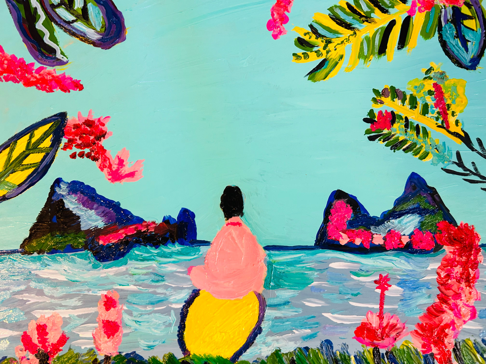 - Subject Matter: Flowers and ocean landscape