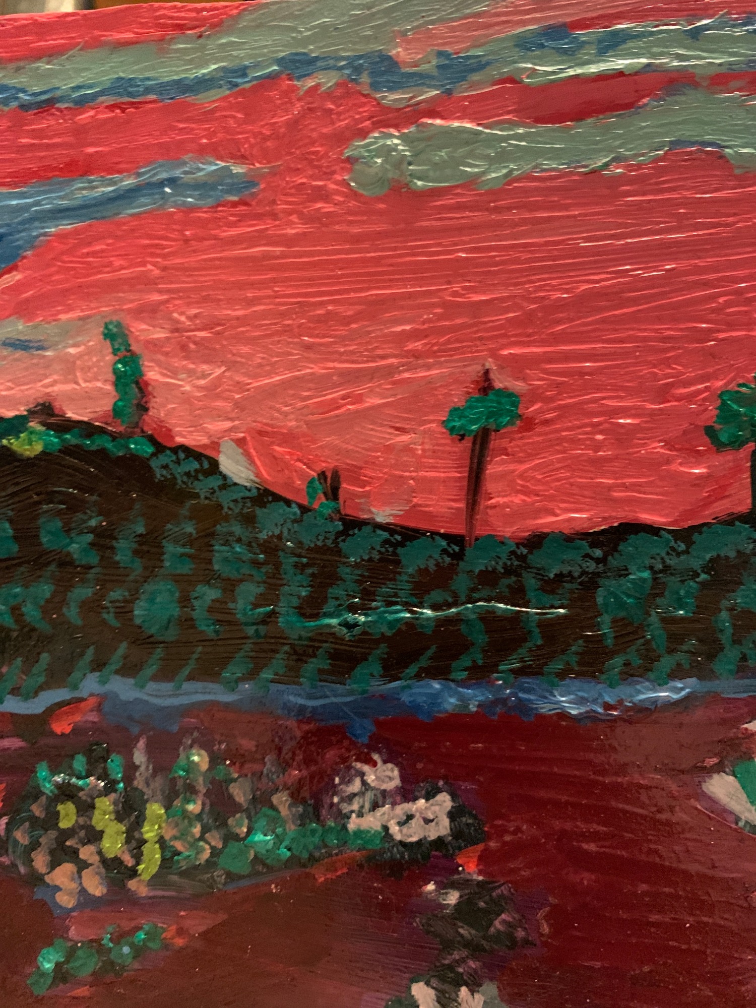 Japanese art was always has informal Grace . My art is structurally very 3D with 1 inch sides on wood. An organic form even in bright pink. A Song to Heaven . I love doing landscapes as this is something I enjoy a lot gardens , adornments for our living areas .