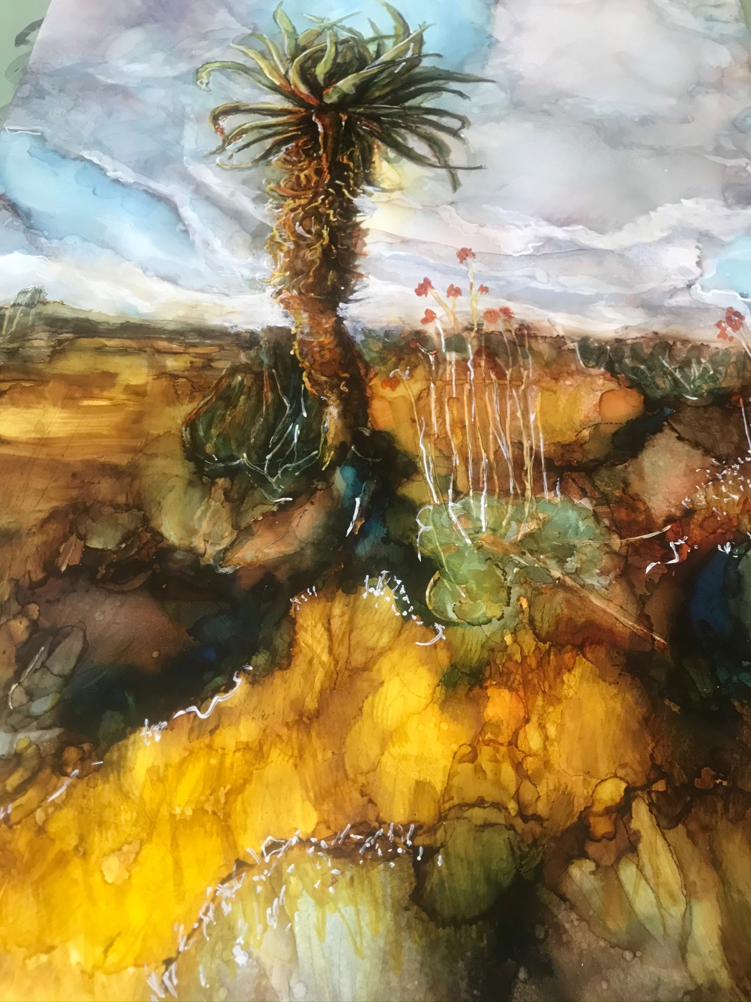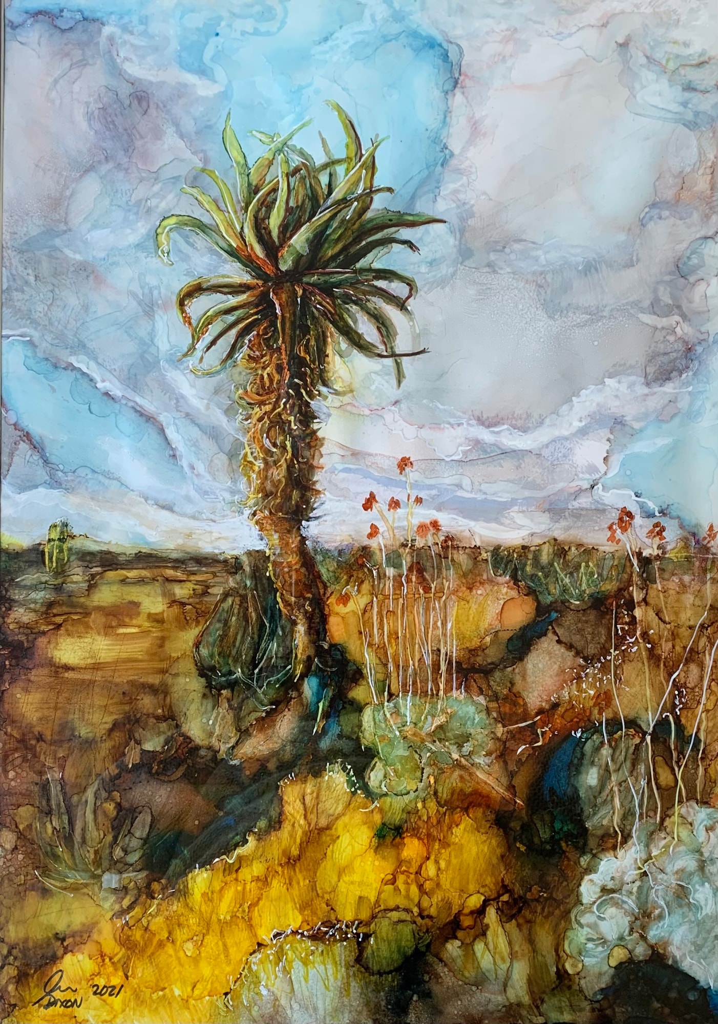 Alchohol ink painting sealed with UV resistant glaze Framed.