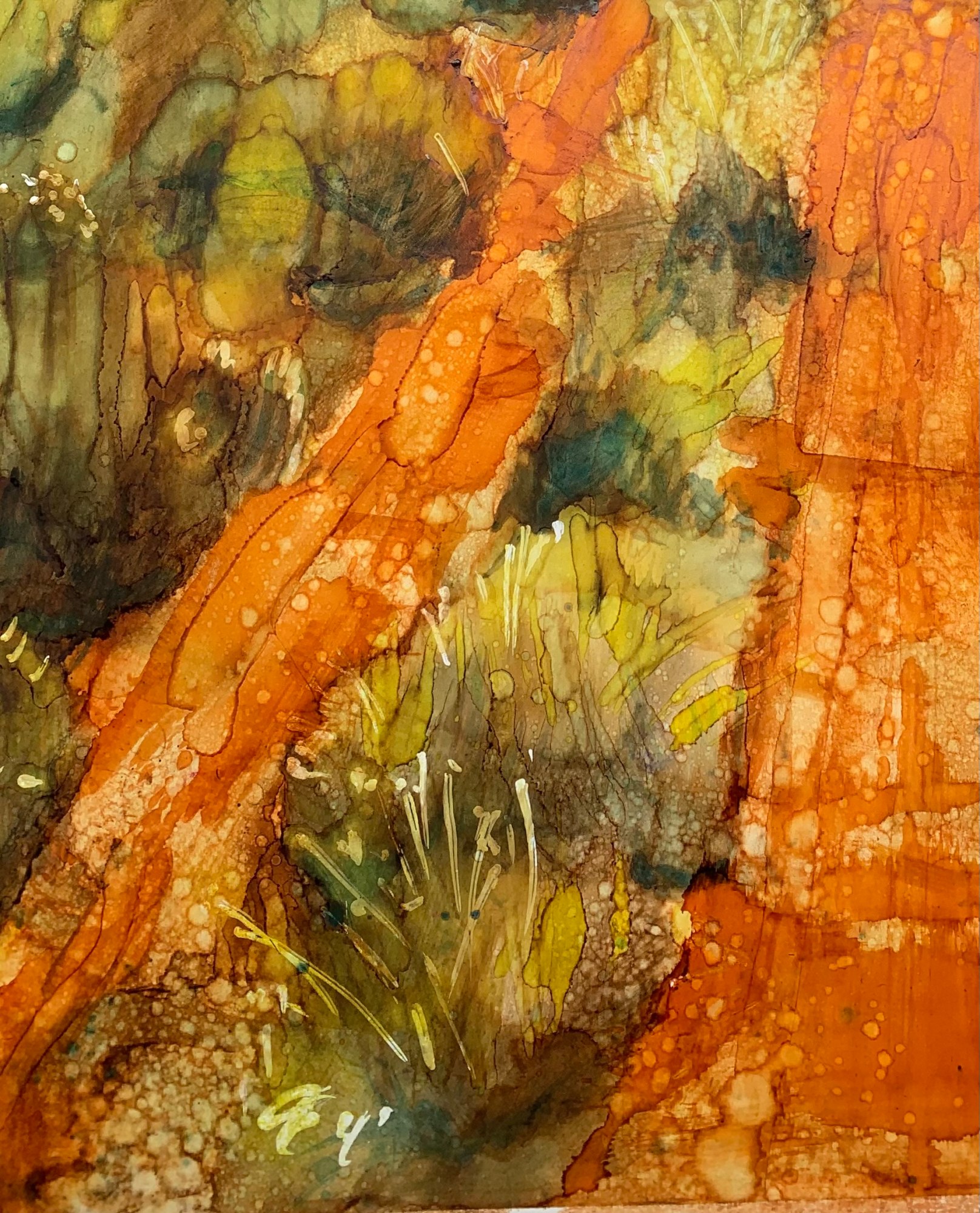 Framed behind glass with cream Mattboard and a thin Aluminium frame.