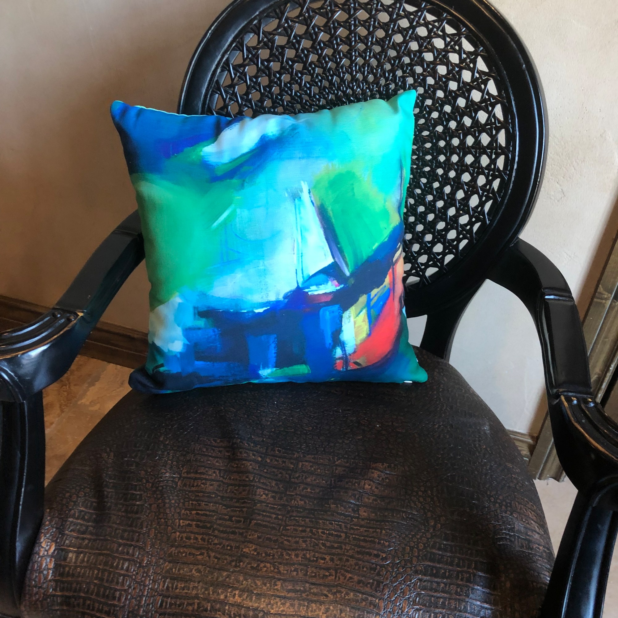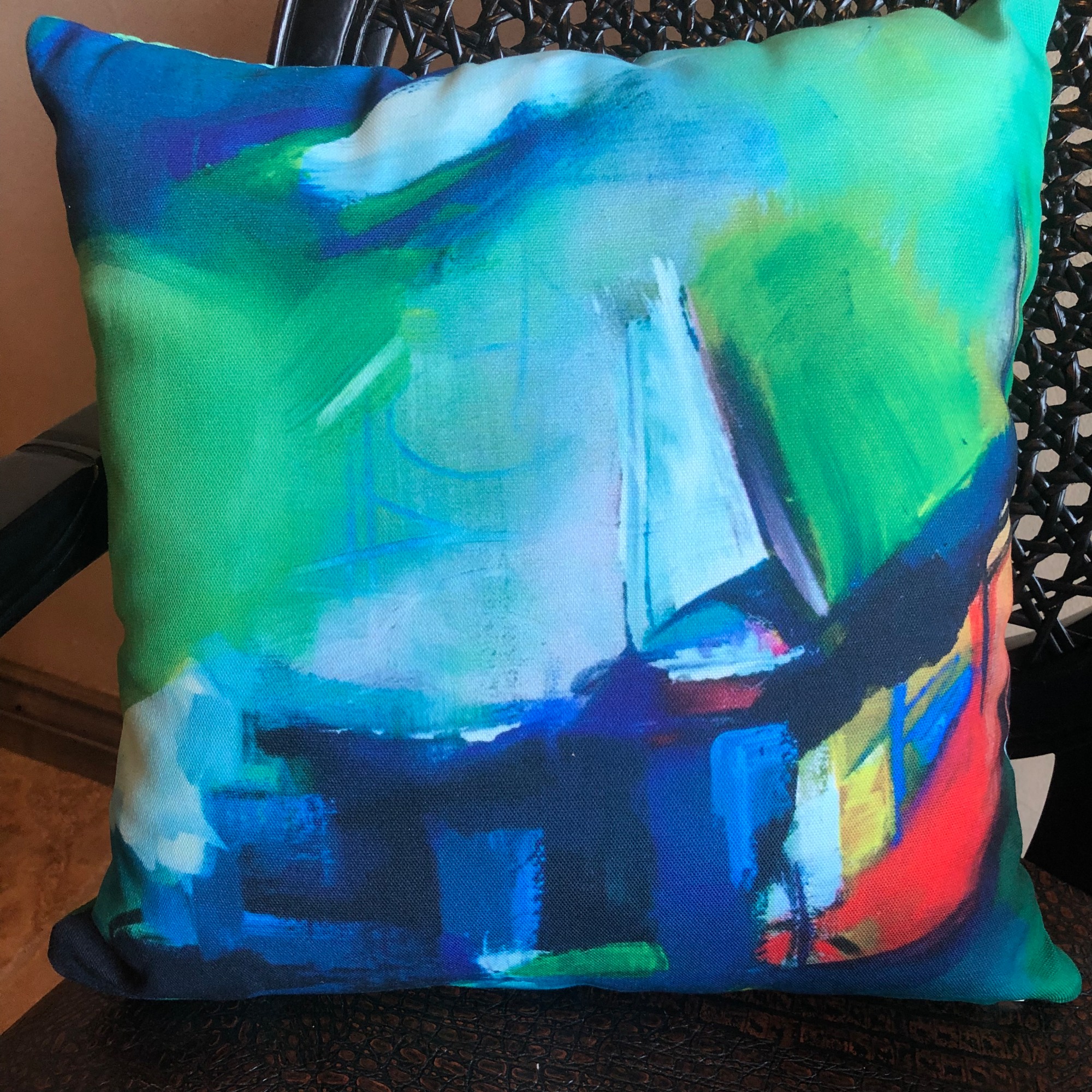 This wonderful throw pillow is from my original artwork titled “Adrift”. Looks great on any couch, chair or corner. Other products and sizes are available. Please inquire.
