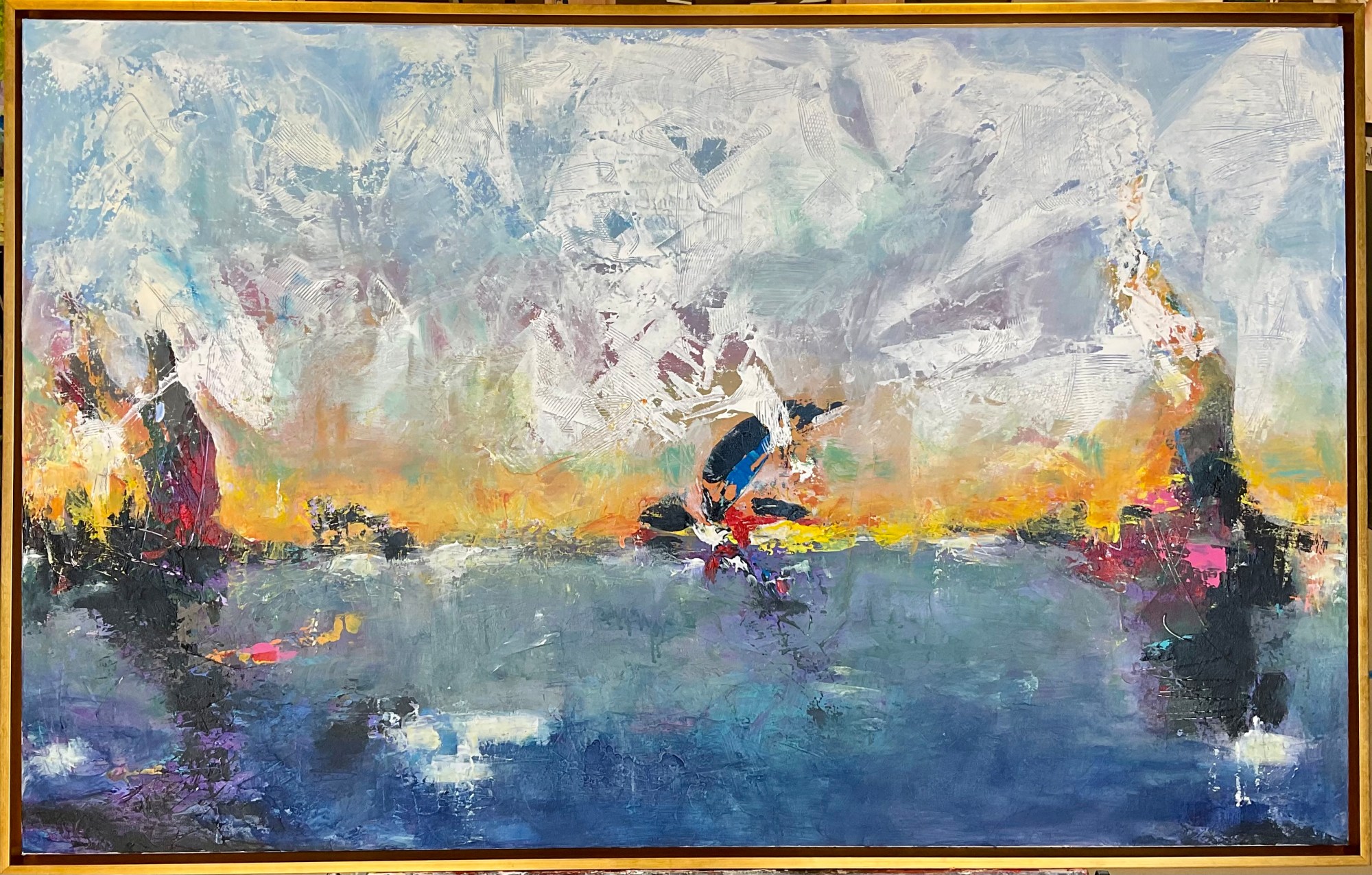 Reflection in Time is a colorful, yet subdued abstract landscape that allows you to get lost in the reflections. This yummy textured piece will look great with any decor.