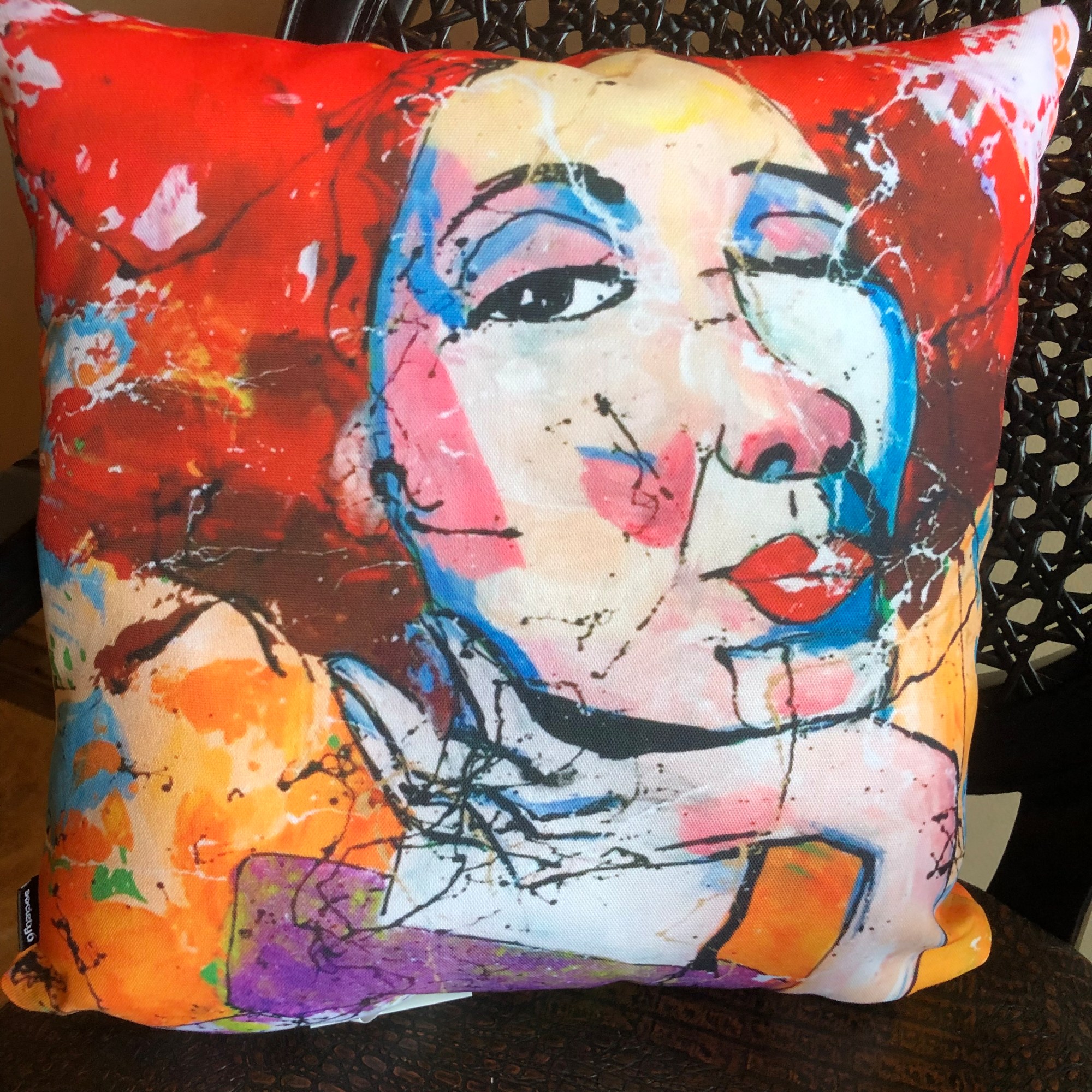 This wonderful throw pillow is from my original artwork titled “Wild Confidence”. Looks great on any couch, chair or corner. Other products and sizes are available. Please inquire.