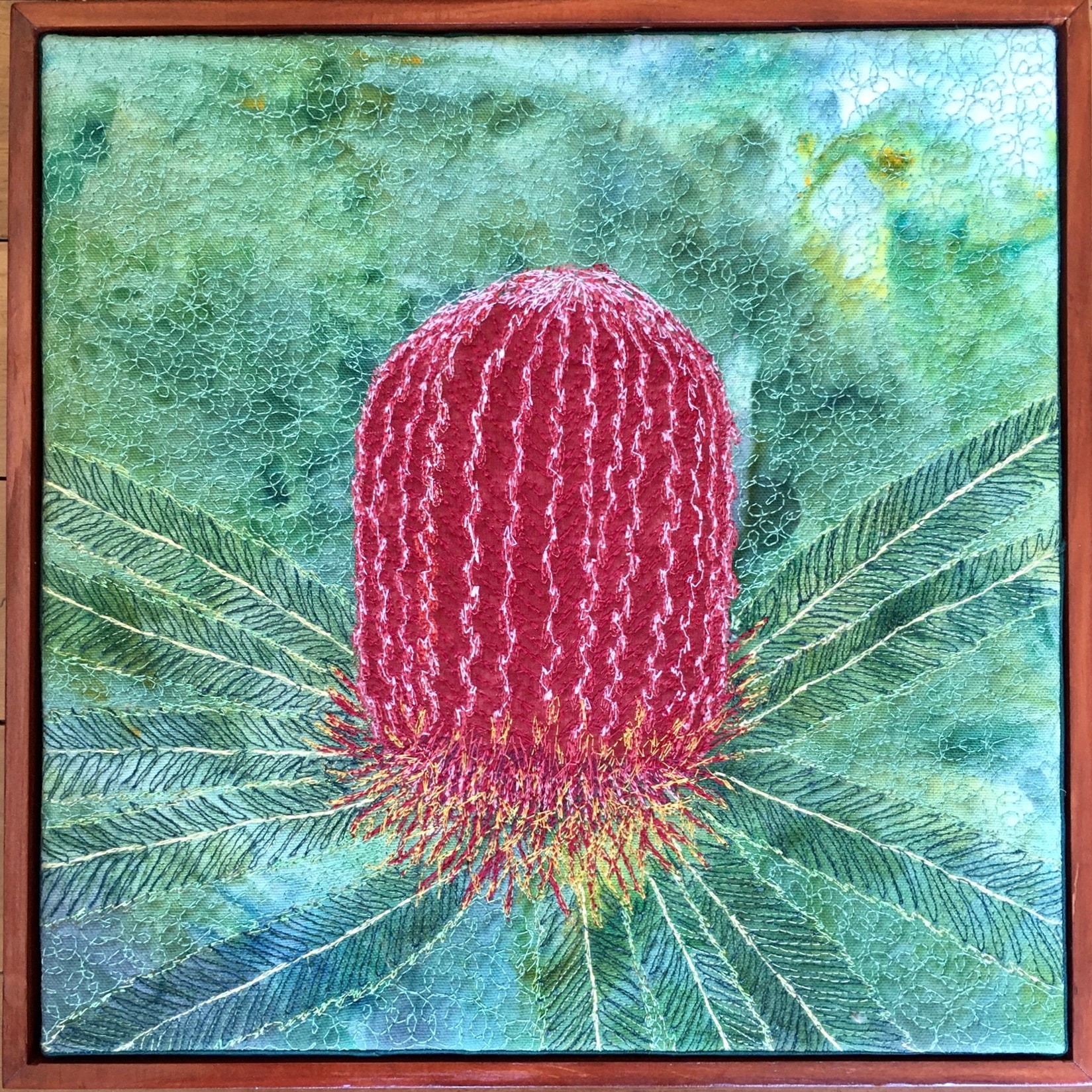 Banksia was Second Equal for Freehand Machine Embroidery (Special theme) in the 2022 Perth Royal Show