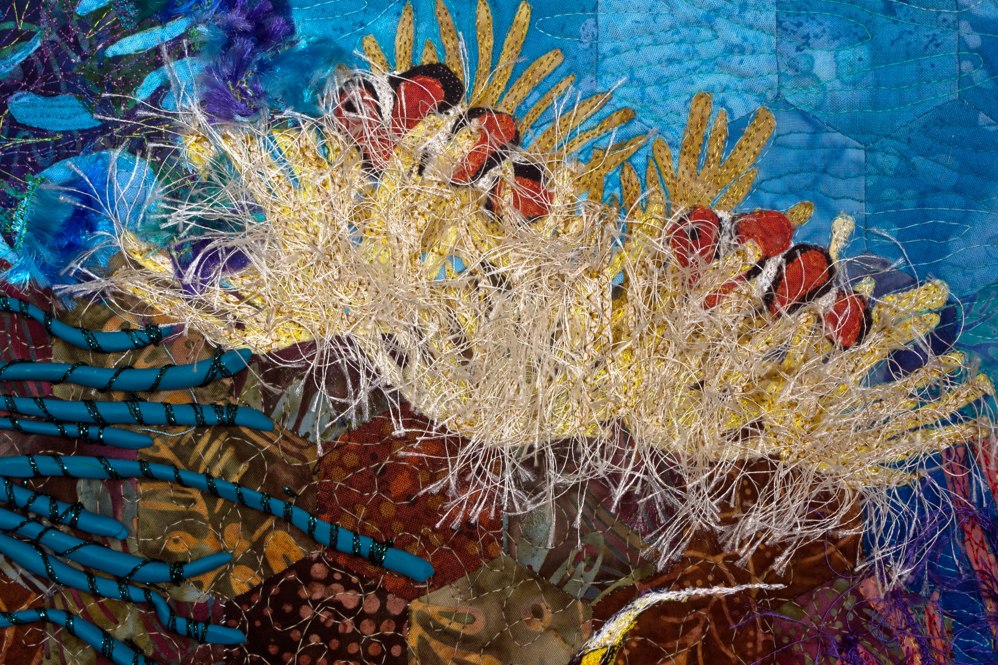 This quilt won second prize in the art quilt category at Quiltwest 2021 and the Encouragement Award.