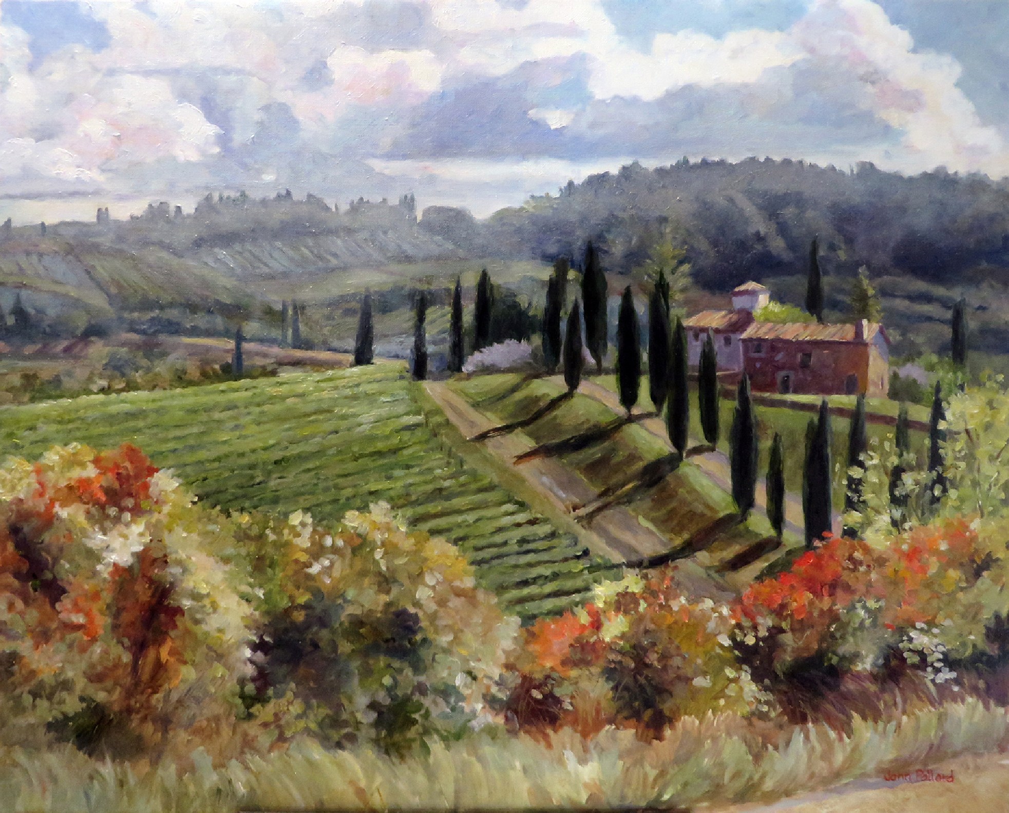 Driving in the Tuscan hills from Volpaio to Panzano, it had been overcast but the sun came out very briefly and I was able to capture this moment where the sun was casting very long shadows from the magnificent, almost black, Italian cypress trees.