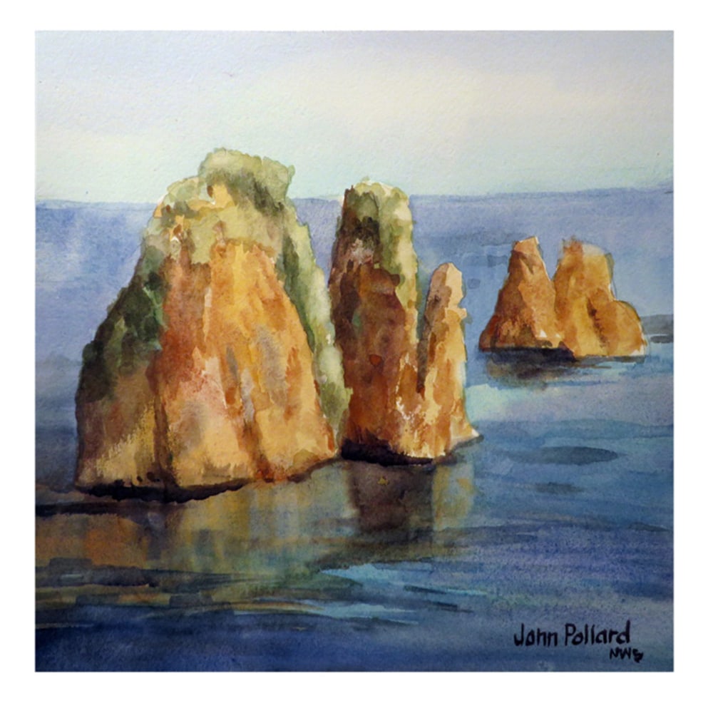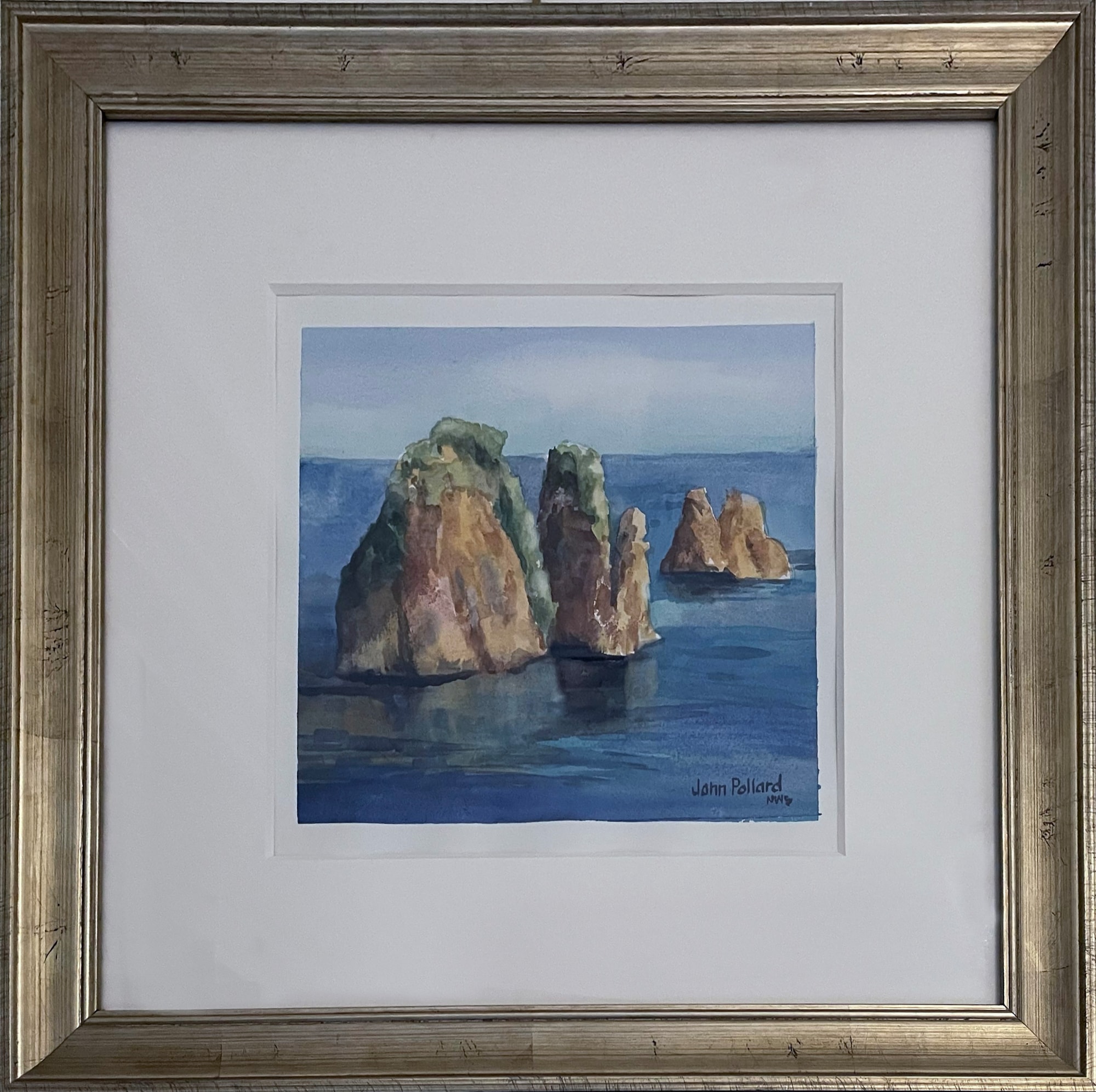 Scopello at the Tuna Factory in Sicily produced these intriguing rock formations. This was painted plein-air to demonstrate reflections, which can be quite challenging in watercolor.