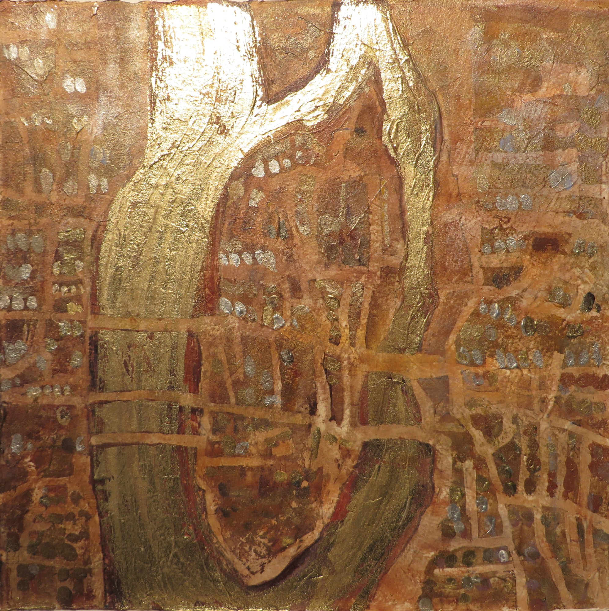 A simple study of my Paris map concept gave me the confidence to proceed with the large map painting by testing the various textures and mediums I had planned to use.