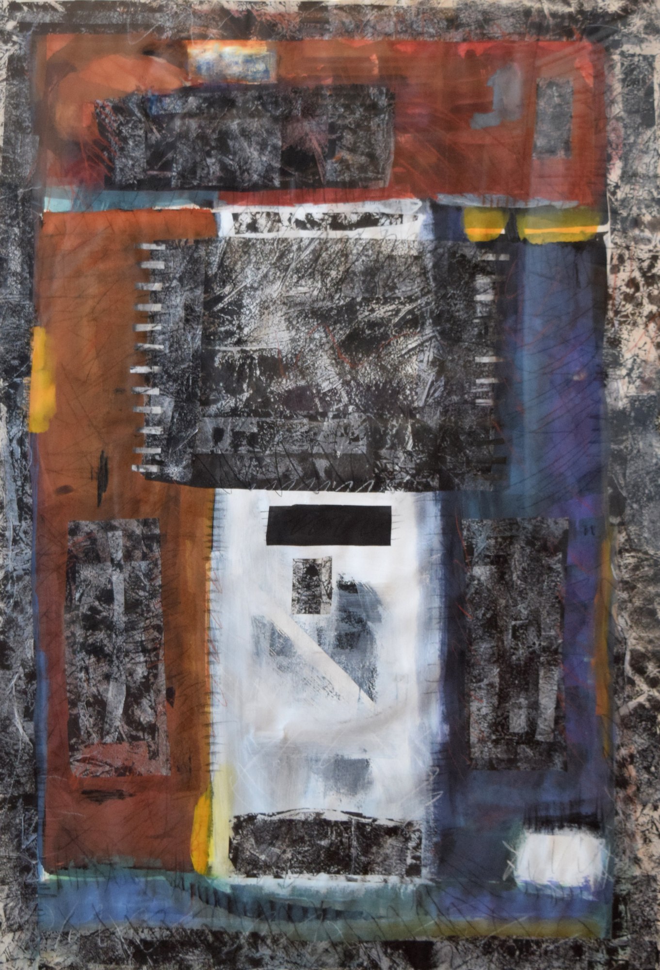 The artist has had a life long interest in the Native American mythology. She has used these stories to build complex multi-layered compositions that read as a physical notation of mark making and meditation. Sumi Ink, watercolor and charcoal on paper.