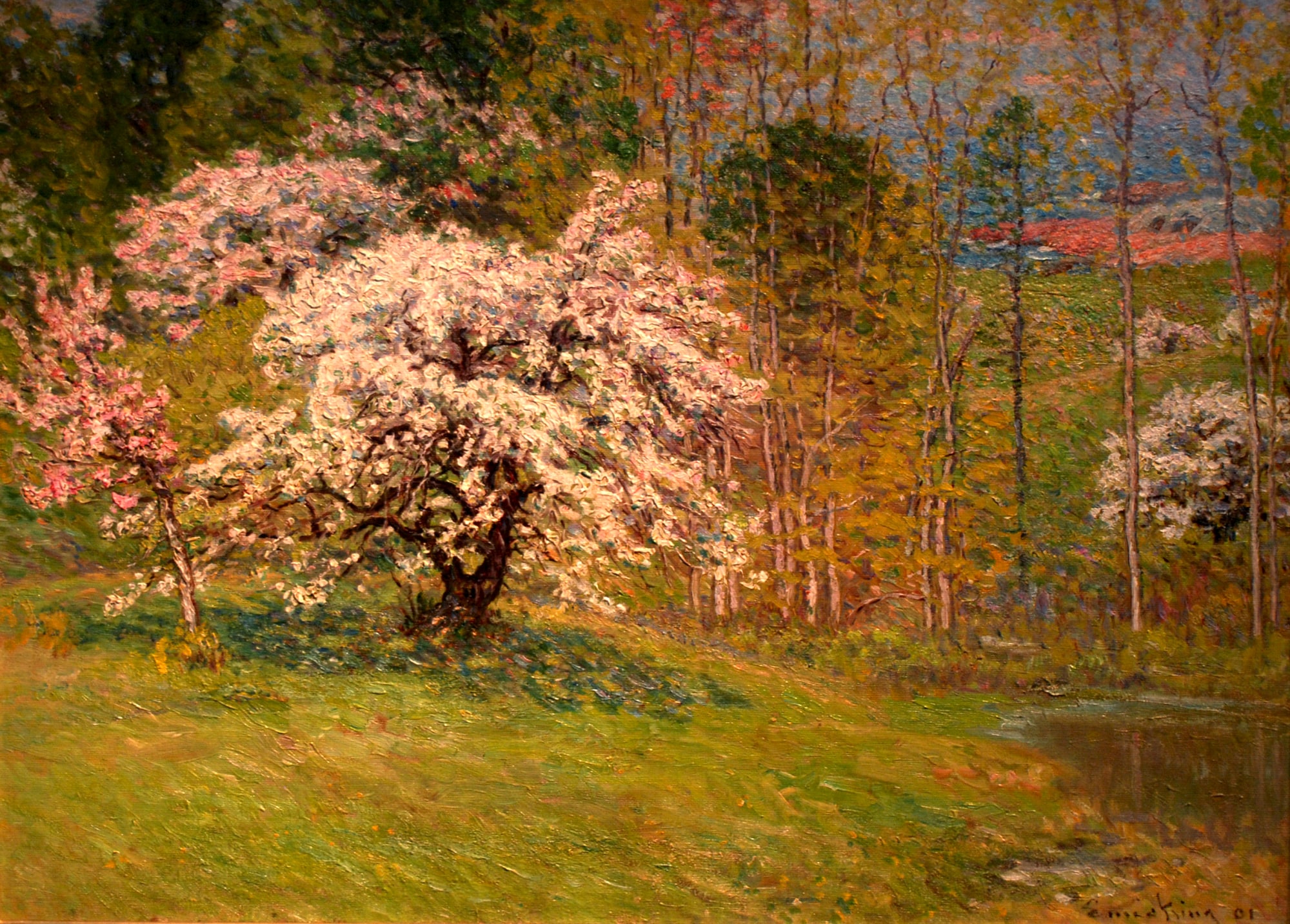John Joseph Enneking (1841 - 1916), a man ahead of his time, had a stylistic foot in both the pre-impressionist and impressionist worlds of the late nineteenth century. An 1873 sketch of Madame Monet bears evidence of his work as perhaps America’s earliest impressionist painter. But he also knew Edouard Manet (1824-1898), and studied with the great French Barbizon teacher Charles-Francois Daubigny (1817-1878), as well as with Eugene Boudin (1824-1898).