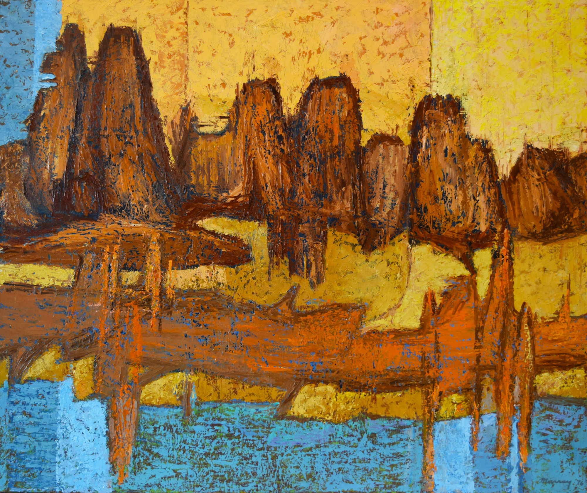 Murray's work career was primarily as the art director for the McCann Erickson Advertising Company, one of the world's noted advertising and marketing companies. In this capacity, he lived in London, Paris and New York, always continuing his personal artwork as a sculptor, painter and sketch artist. The majority of his available paintings were done after his retirement in the years from 1960 -1980,using the abstract style for which he is now best known. From his days as a boy in Wollaston, MA and his retirement years in Duxbury, MA, the shore and boating had a strong influence on his work. Shapes sometimes reflect sails and he often used earth colors which recall both sand and dunes.