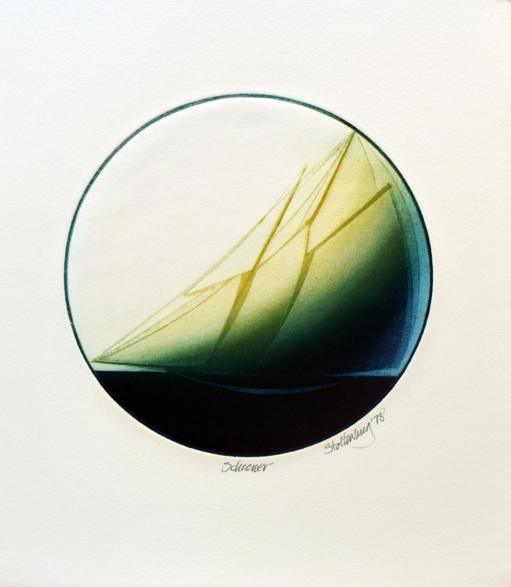 Six color variations within this set of prints which the artist uses a Yankee Schooner as the object.