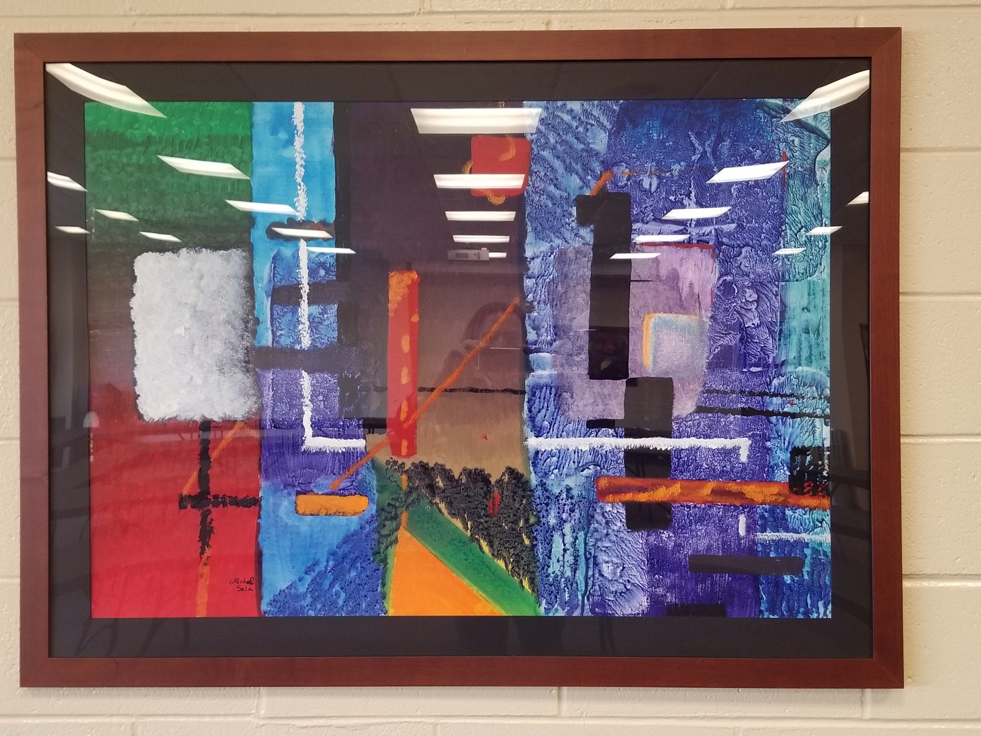 Abstract composition using gouache with bold colors.
