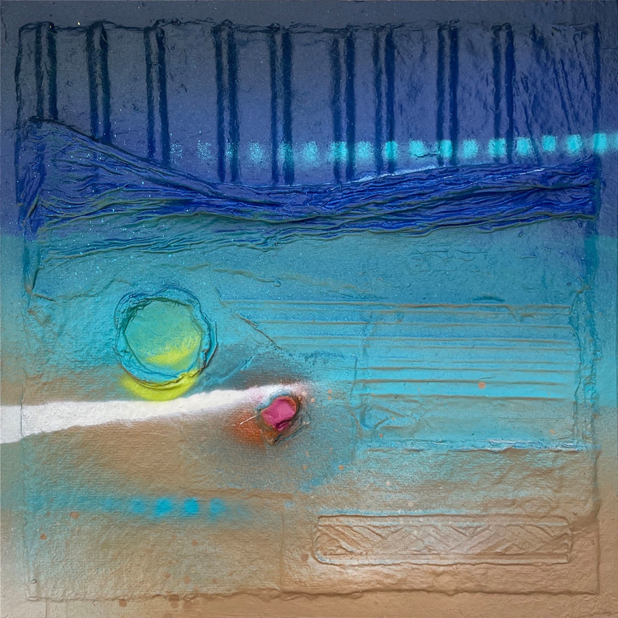 - Mixed media oil painting on wood panel. Recycled paper (brown sacks, newsprint, and computer printer paper), recycled Stash teabag foil-lined package, and plastic packaging.