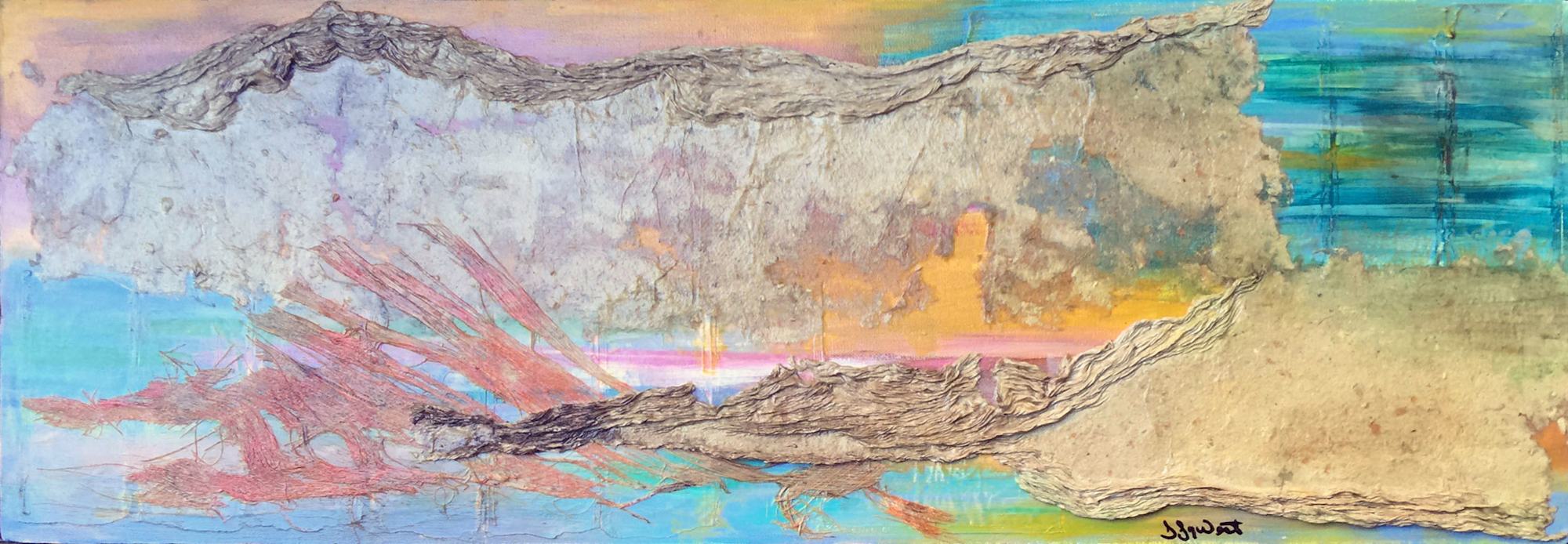 Recycled paper, tea bag packaging, coconut fiber, acrylic paint
