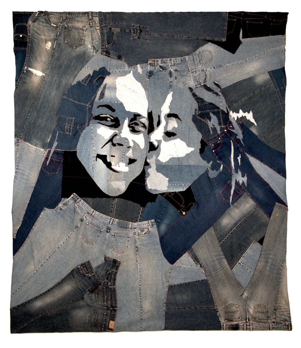 This quilt is made out of jeans my sister and I shared growing up and is modeled after my favorite childhood photo of the two of us.