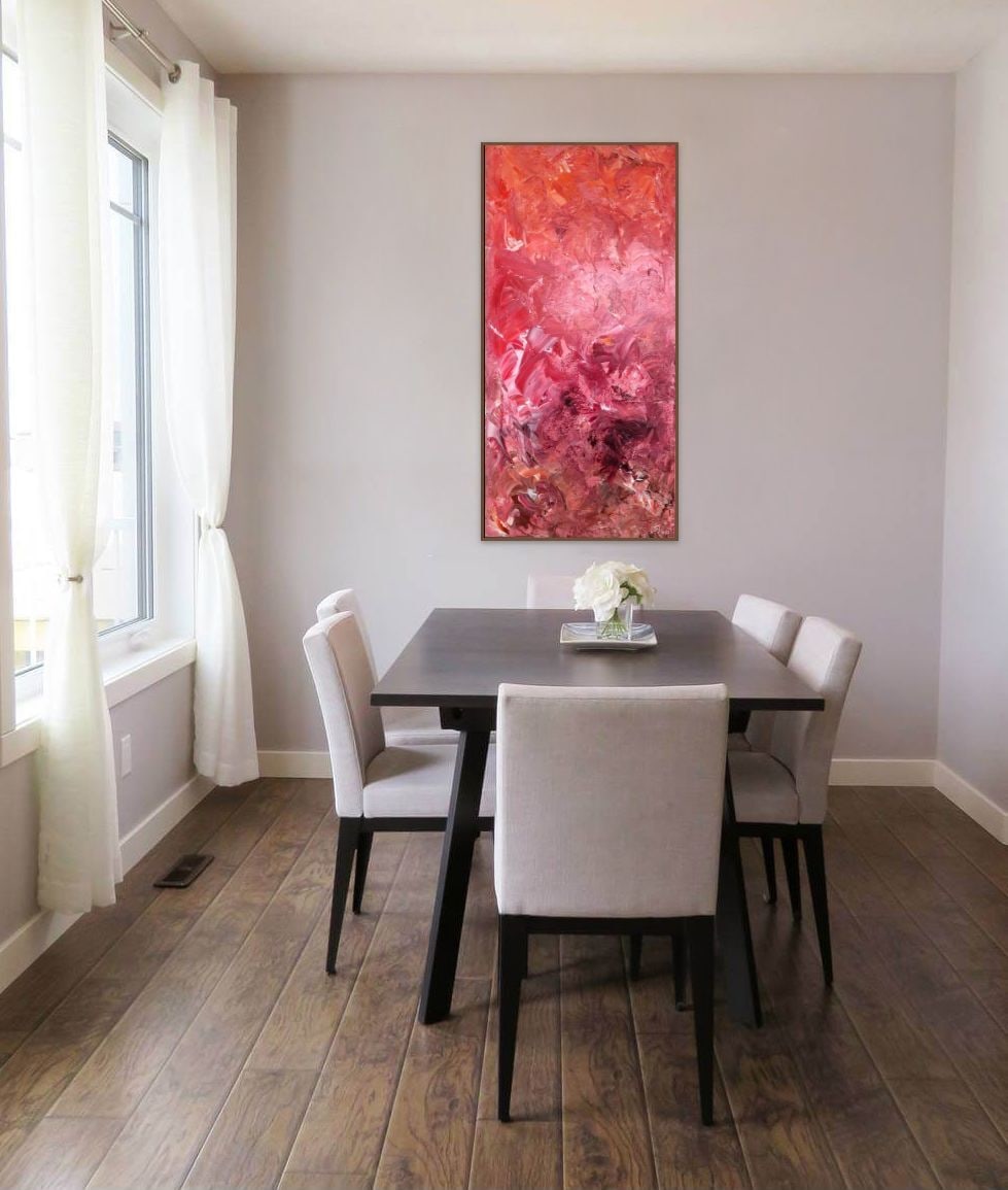 The fifth in the 'Awakening' series, this artwork has a pink background and is then layered with the full range of Liquitex Professional Heavy Body 'red' colours paint ~ an apt metaphor for the strength that lies within, awaiting to be unleashed